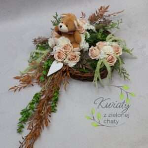 Kompozycja na grób w wiklinowym koszu i z dużym kwiatem nr 396