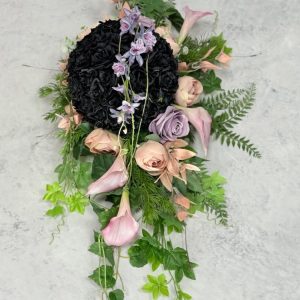 Kompozycja na grób w drewnianym pojemniku z lilią i kalią nr 230