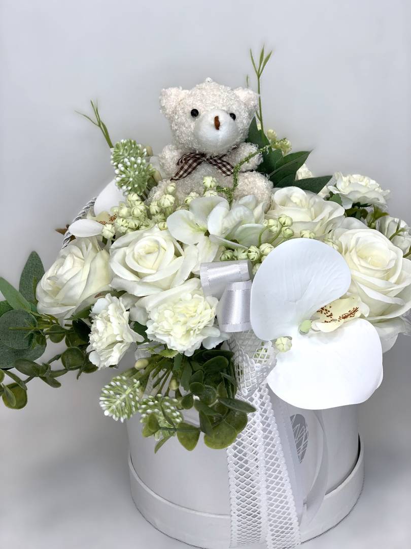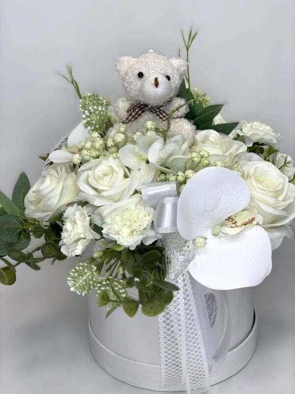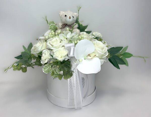 Biały flower box z miśkiem