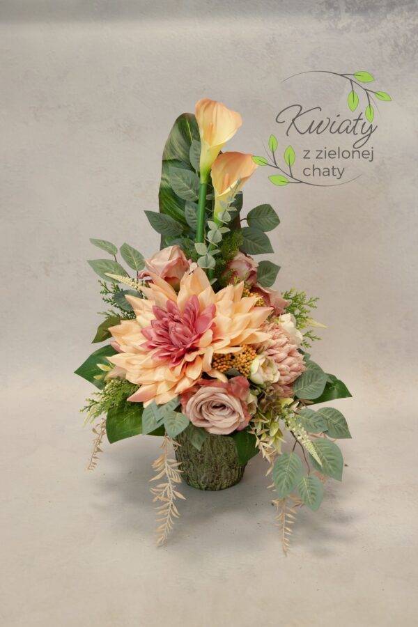 Bukiet nagrobny z kalią i dużym kwiatem.