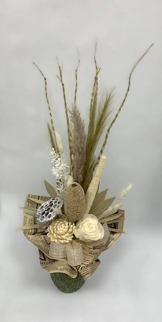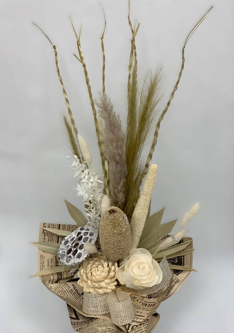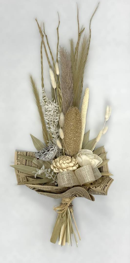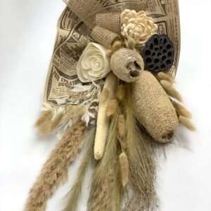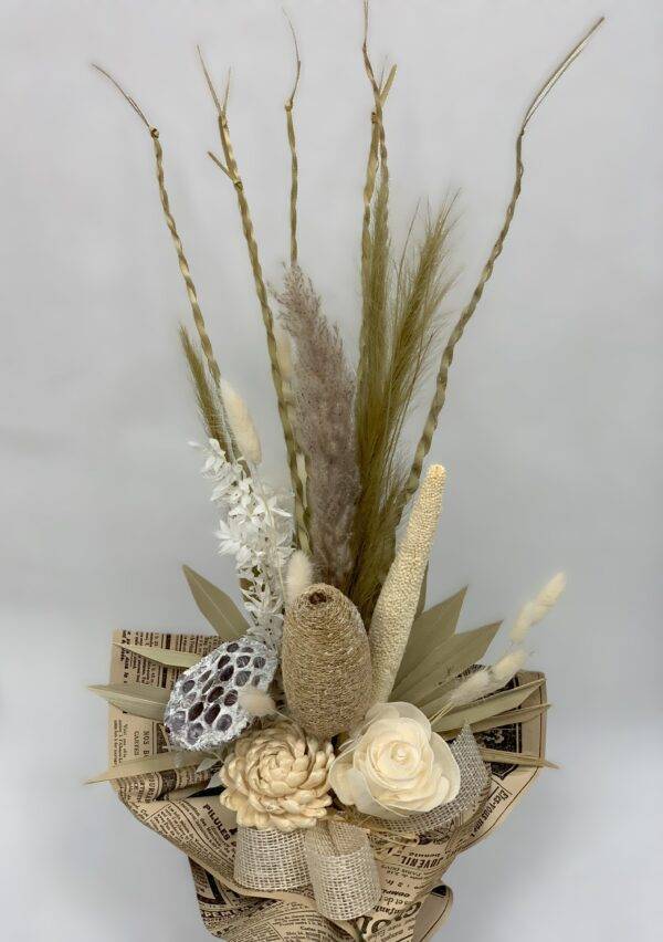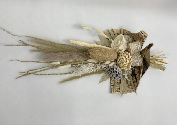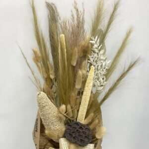 Odkryj piękno natury dzięki naszemu bukietowi z suszu egzotycznego. Bukiet został stworzony w naszej pracowni, wszystkie jego elementy są z naturalnych suszonych i preparowanych produktów, dlatego będzie cieszyć oko swym pięknem przez długi czas.