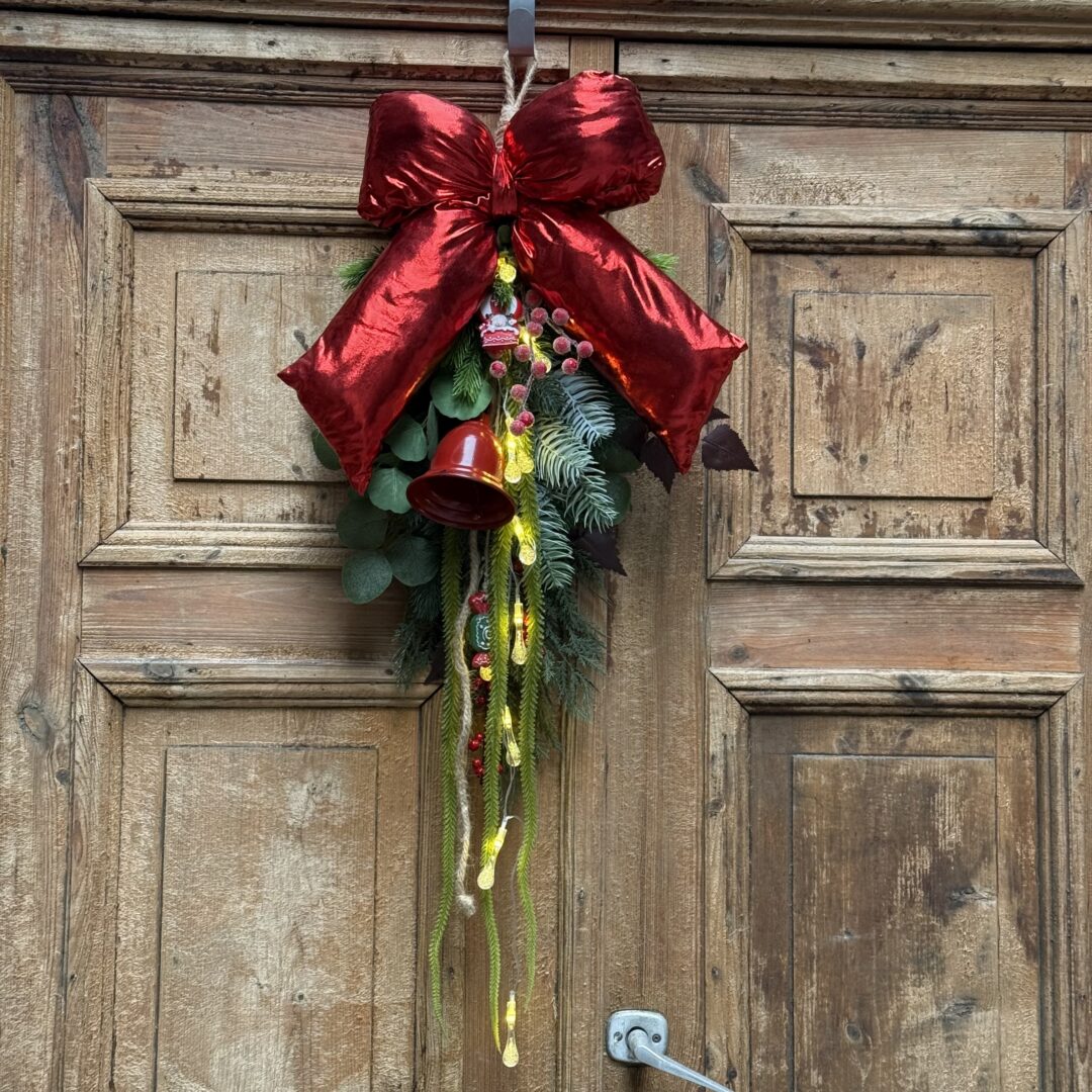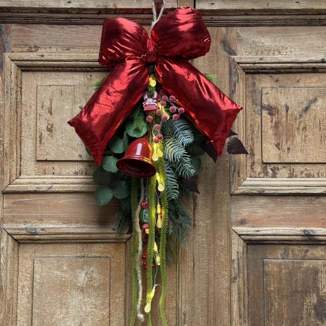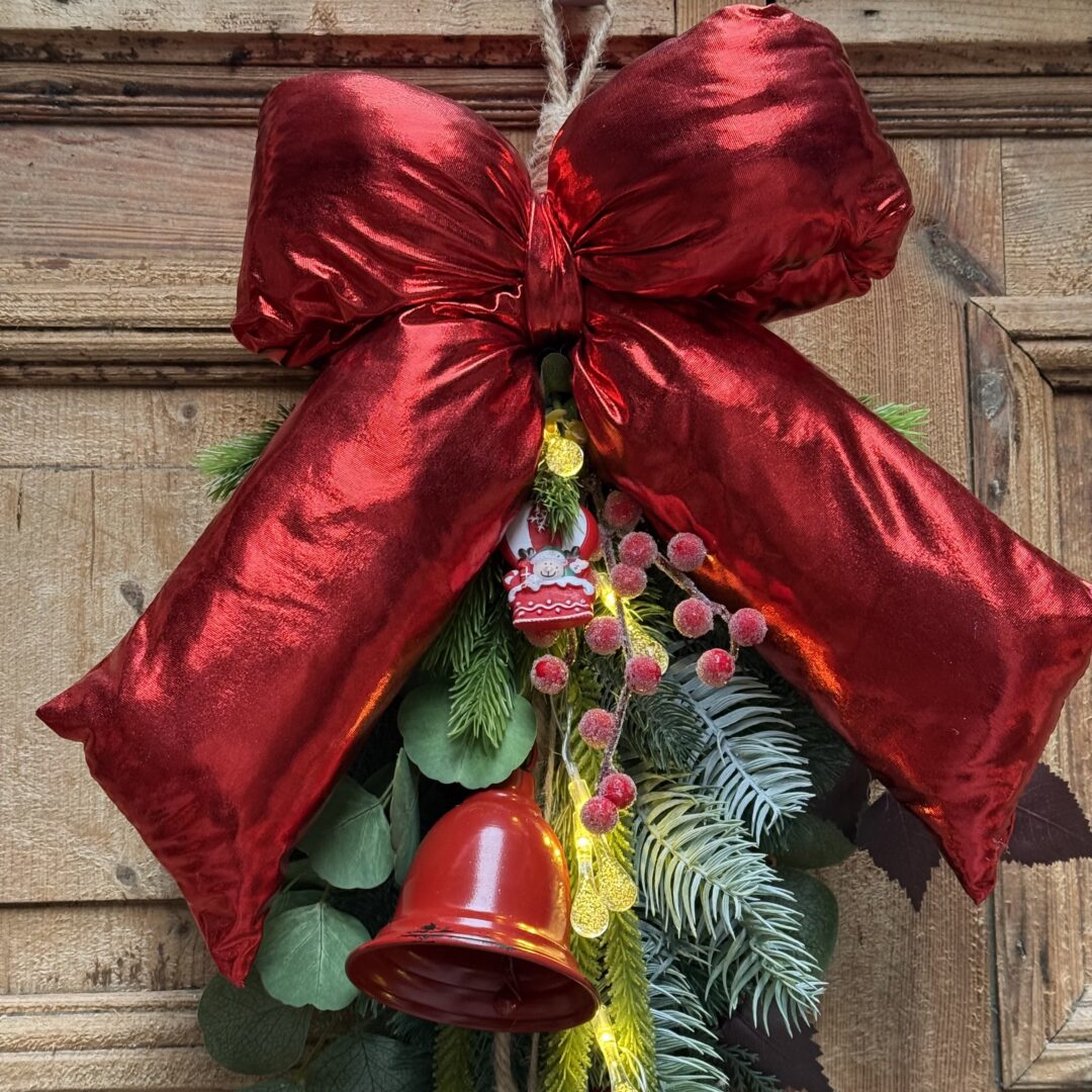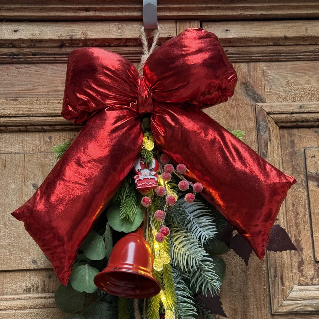 Dekoracja świąteczna czerwona kokarda z lampkami nr B427