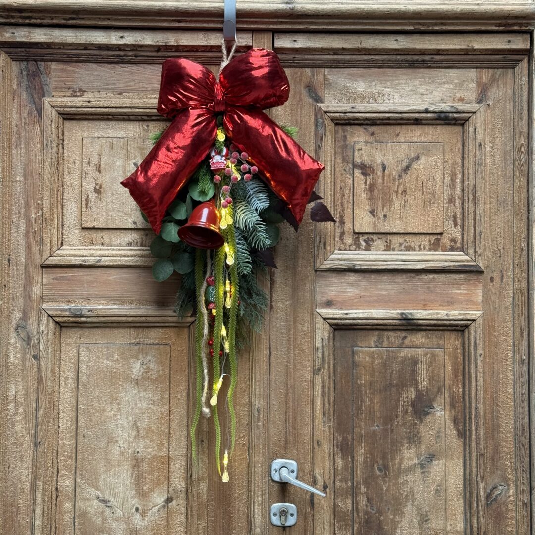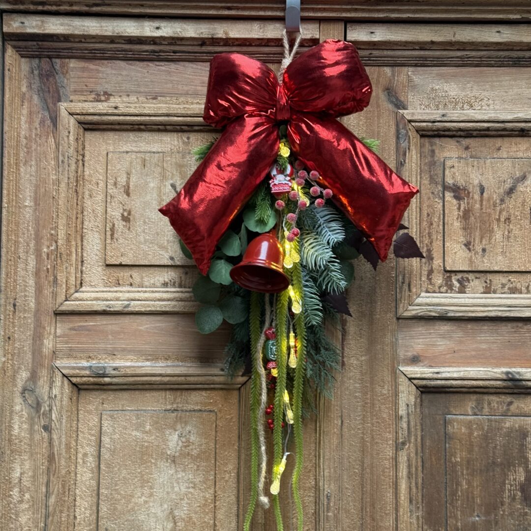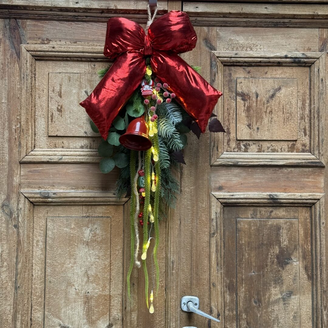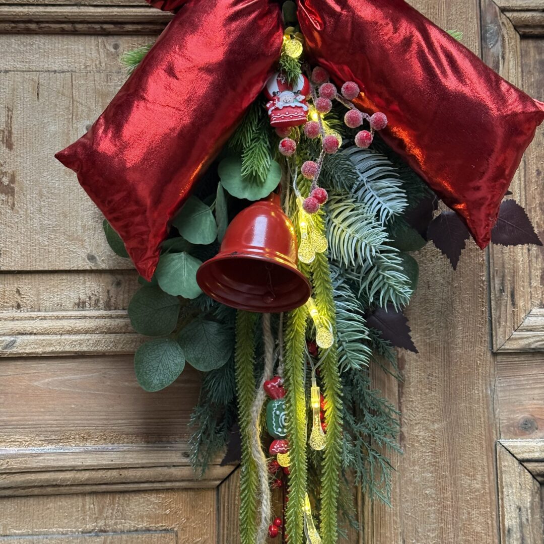 Dekoracja świąteczna czerwona kokarda z lampkami nr B427