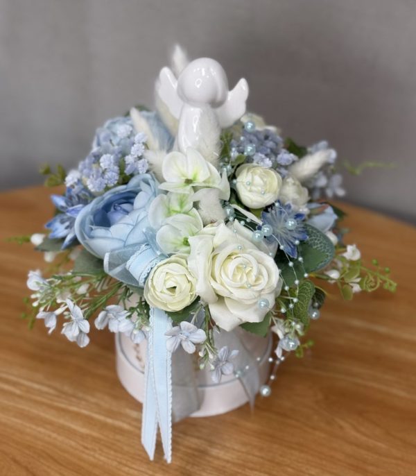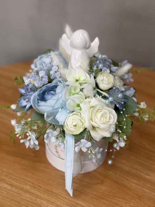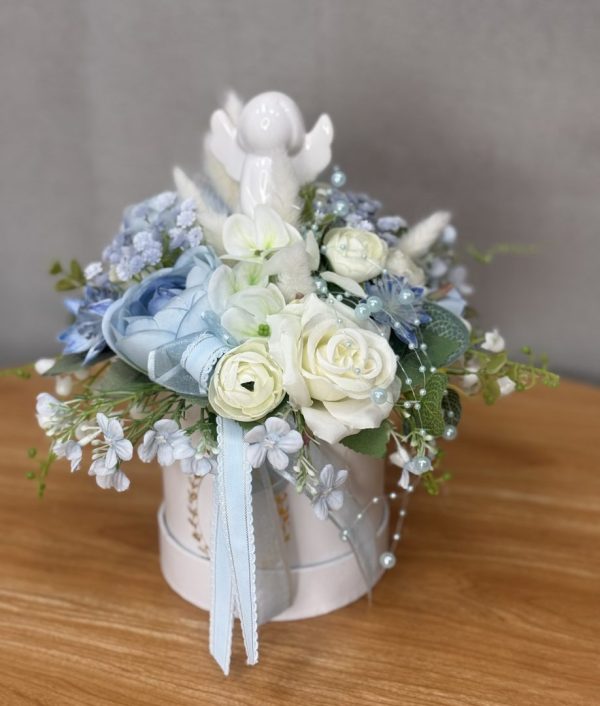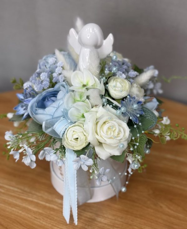 Flower box niebieski, biały aniołek nr W047