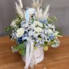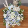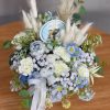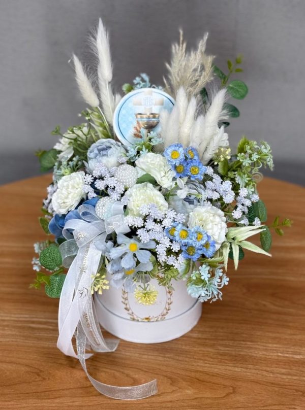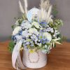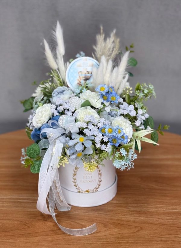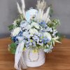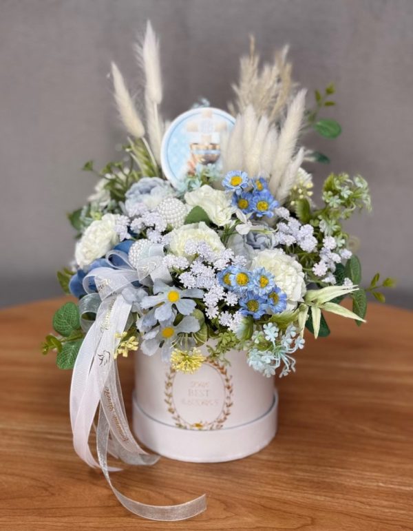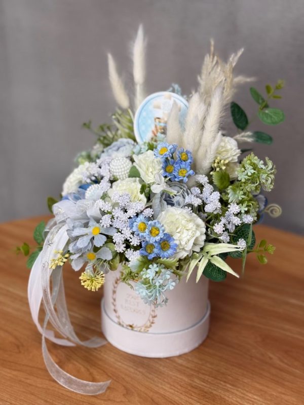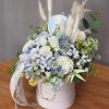 Flower box niebieski, biały goździk W070