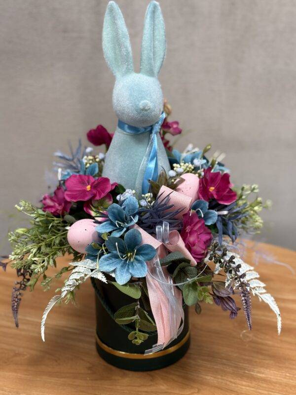Dekoracja wykonana jest w ozdobnym pudełku na kwiaty.