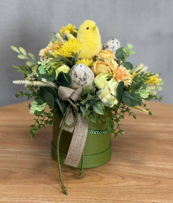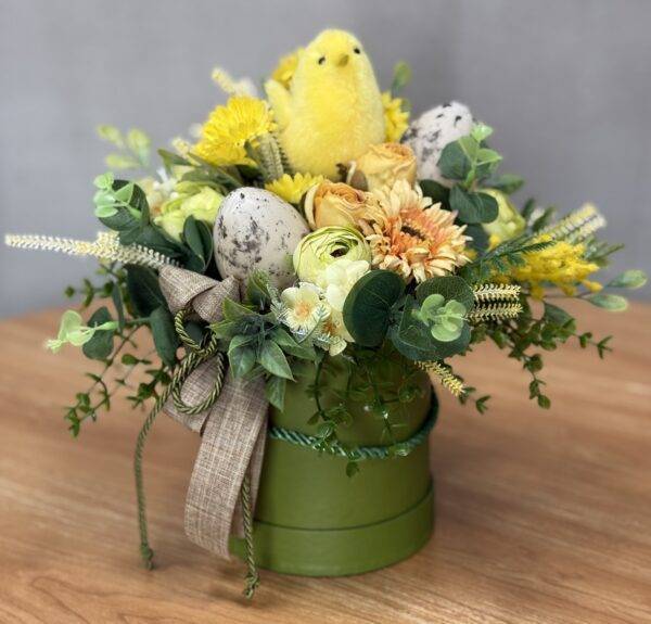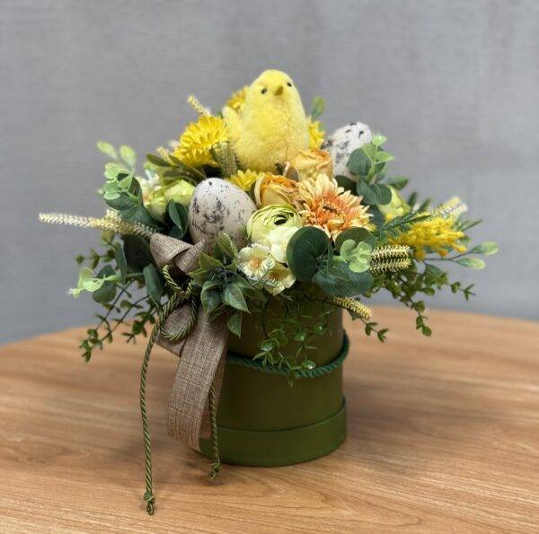 Dekoracja wykonana jest w ozdobnym pudełku na kwiaty.