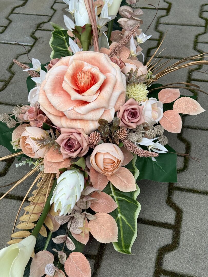Wszystkie kwiaty sztuczne użyte w naszych kompozycjach są wysokiej jakości – dzięki temu zachwycają swym urokiem i pięknem przez długi czas.