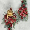 Dekoracja do położenia wykonana na słomianym wianku, długość około 100 cm, szerokość około 58 cm.