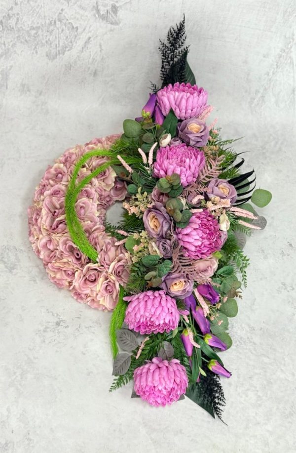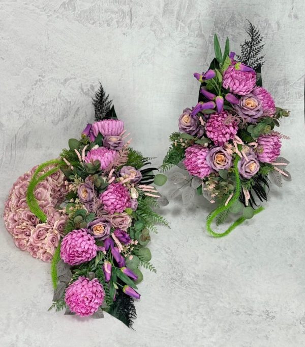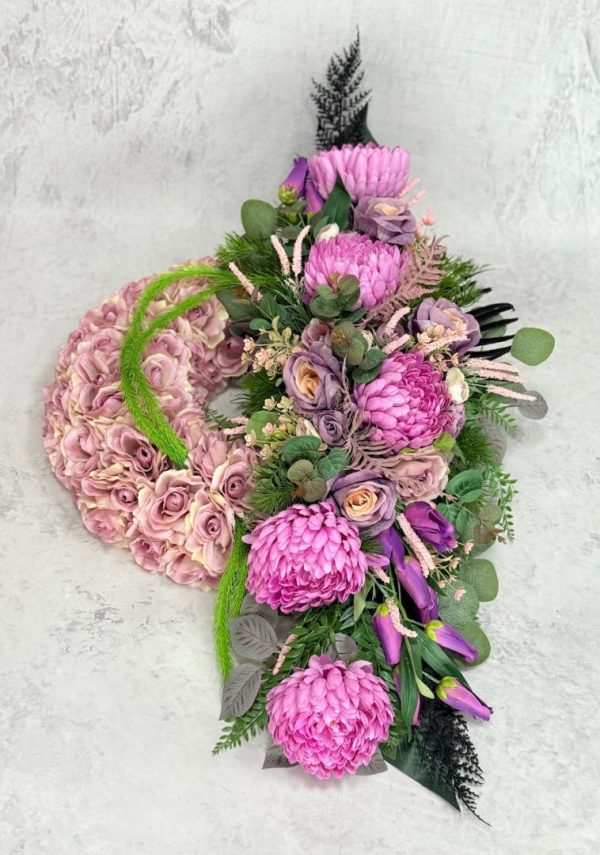 Komplet nagrobny fioletowy wianek z chryzantemą nr 667
