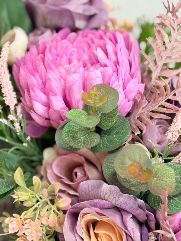 Wszystkie kwiaty sztuczne użyte w naszych kompozycjach są wysokiej jakości – dzięki temu zachwycają swym urokiem i pięknem przez długi czas.