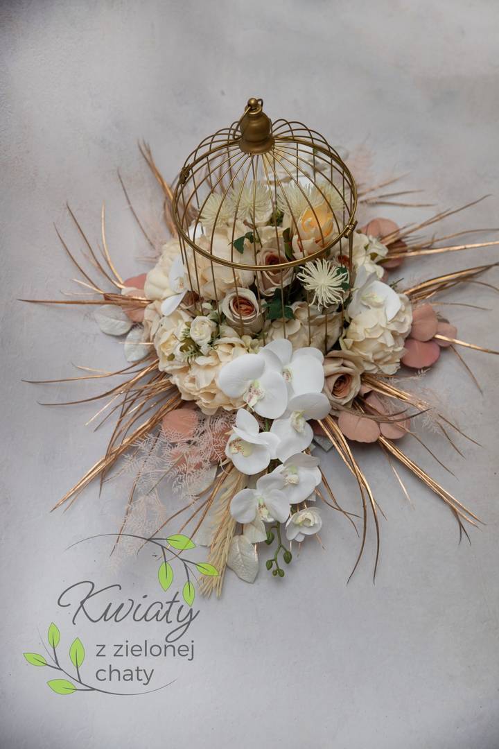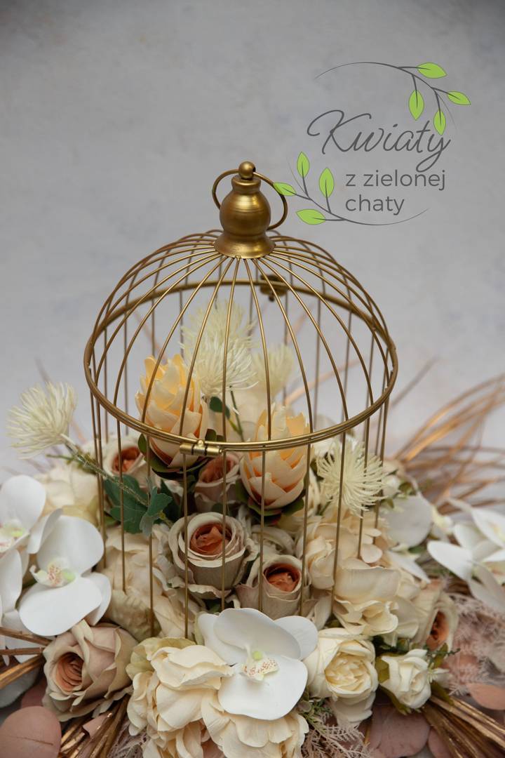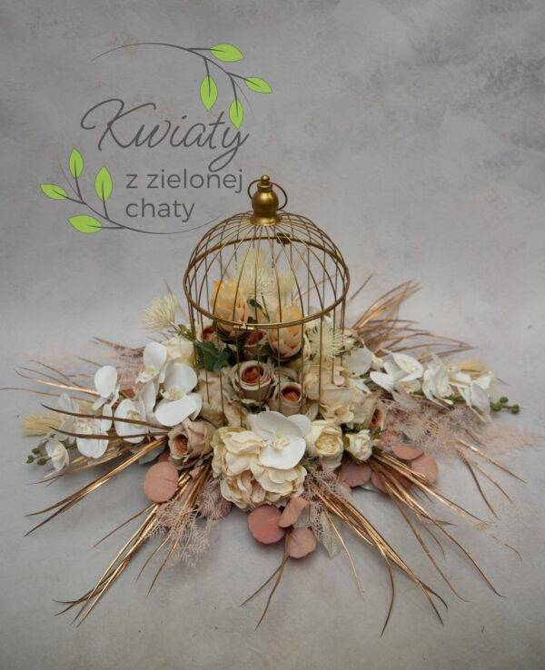 Kompozycja na grób w dużej, złotej klatce nr 295