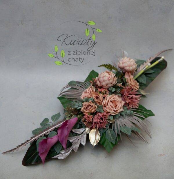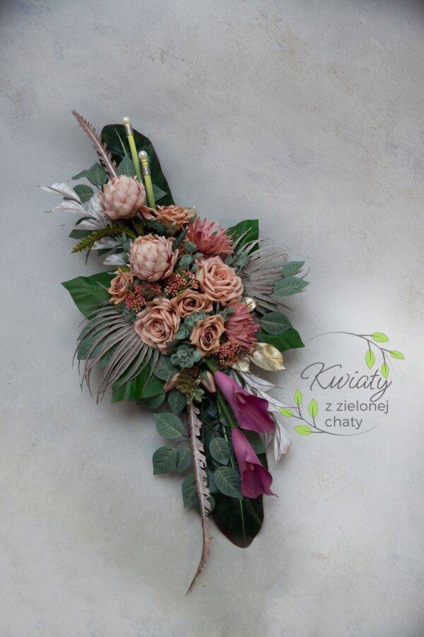 Kompozycja na grób z lawendową kalią i proteą nr 342