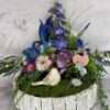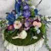 Dekoracja do położenia w drewnianym okrągłym pojemniku – długość około 40 cm, szerokość około 55 cm, wysokość 37 cm.