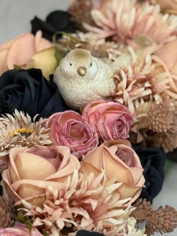 Wszystkie kwiaty sztuczne użyte w naszych kompozycjach są wysokiej jakości – dzięki temu zachwycają swym urokiem i pięknem przez długi czas.