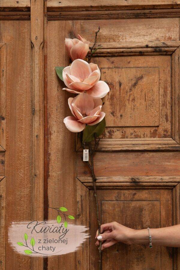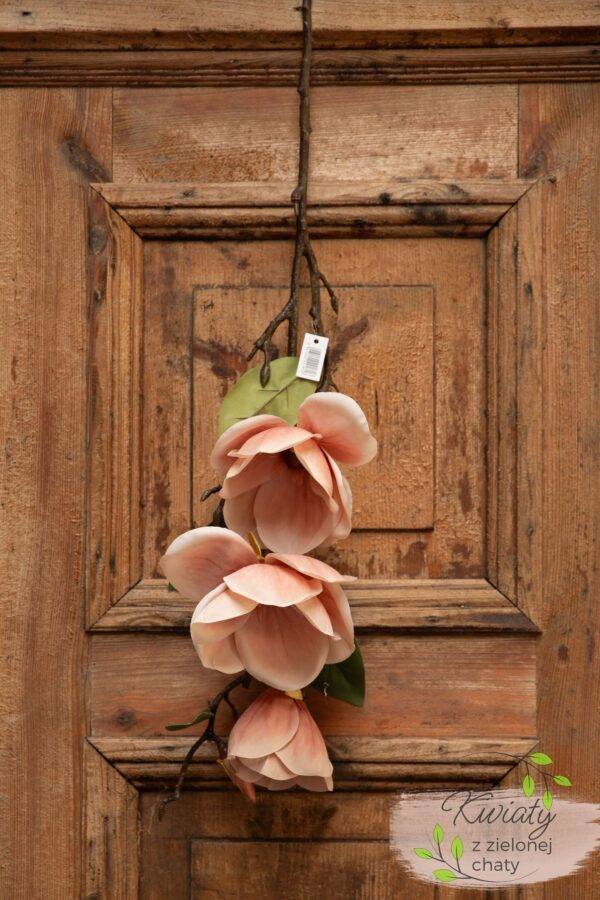 Magnolia kolor brzoskwiniowy, na jednej gałązce 3 kwiaty, długość całkowita 96 cm