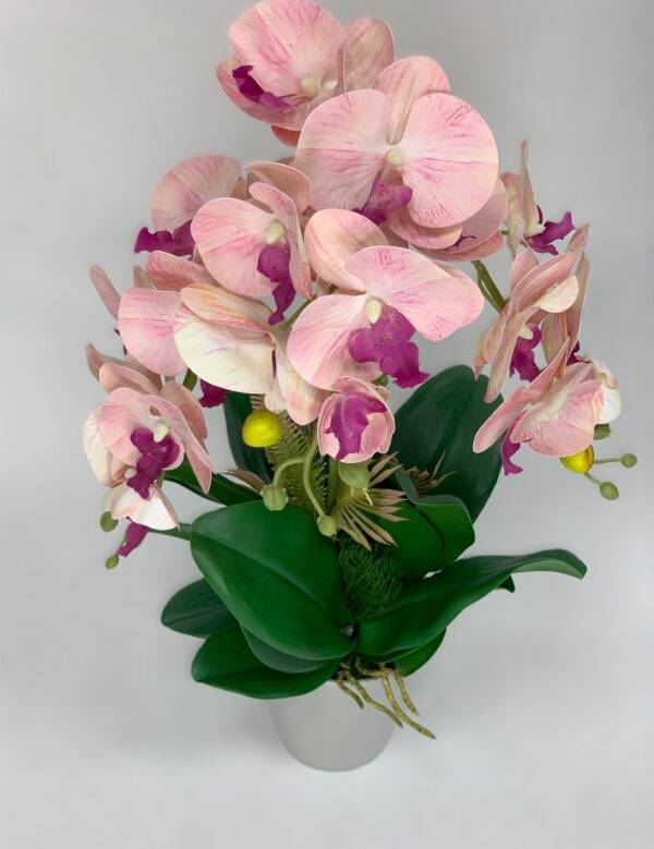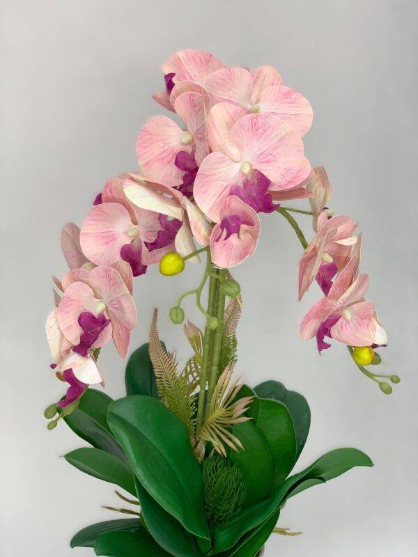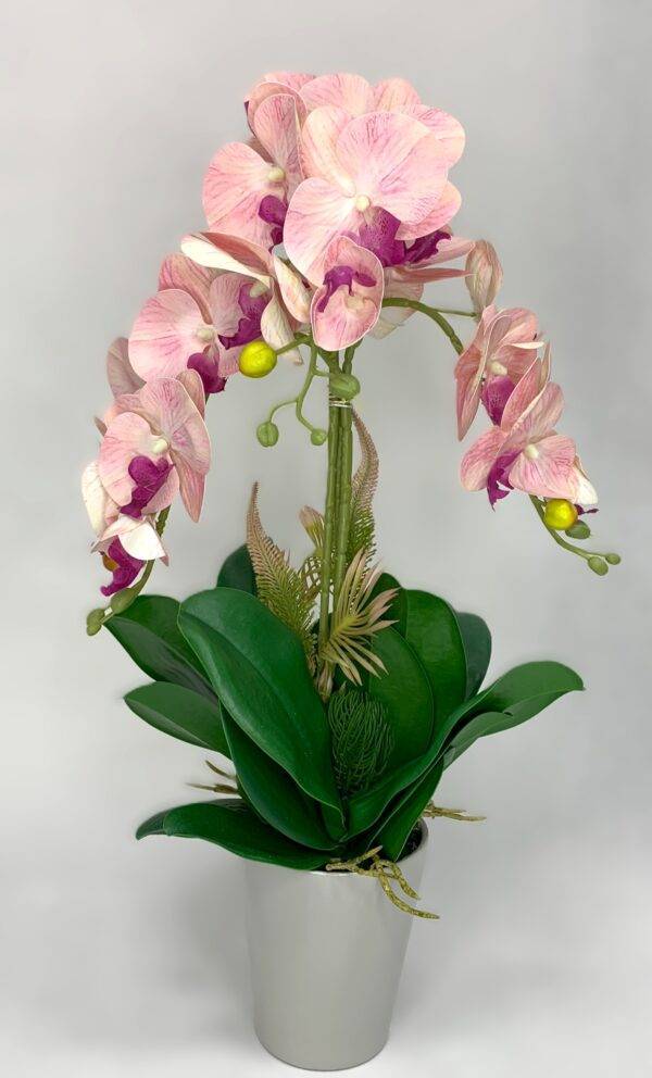 Potrójny sztuczny storczyk w różowym kolorze to wyjątkowa ozdoba, która doda uroku i koloru każdemu wnętrzu. Storczyki wykonane są z bardzo wysokiej jakości materiałów, co sprawia, że wyglądają one niezwykle realistycznie i atrakcyjnie.