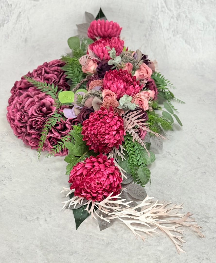 Wszystkie kwiaty sztuczne użyte w naszych kompozycjach są wysokiej jakości – dzięki temu zachwycają swym urokiem i pięknem przez długi czas.
