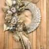 Kwiaty wianka wykonane są z dbałością o detale, a ich barwy tworzą harmonijną kompozycję, która wspaniale prezentuje się zarówno na drzwiach, jak i wewnątrz pomieszczeń. Dodatek welurowego serca i wstążek nadaje wiankowi delikatności i romantyzmu.