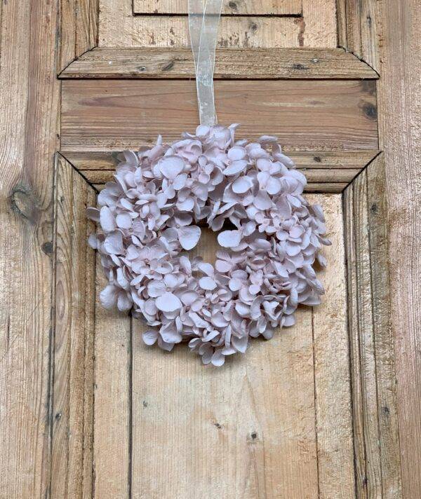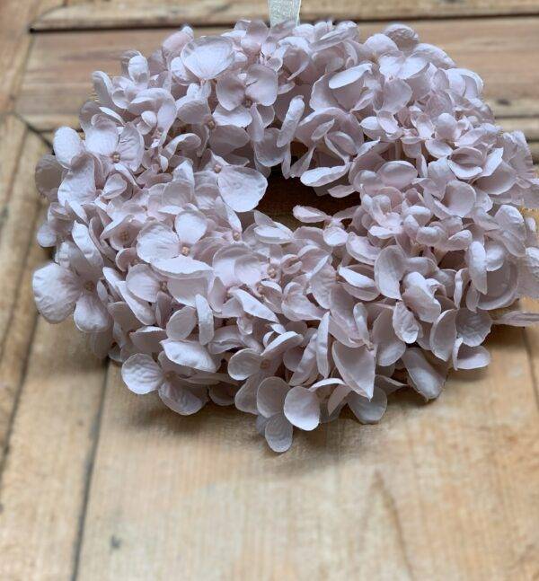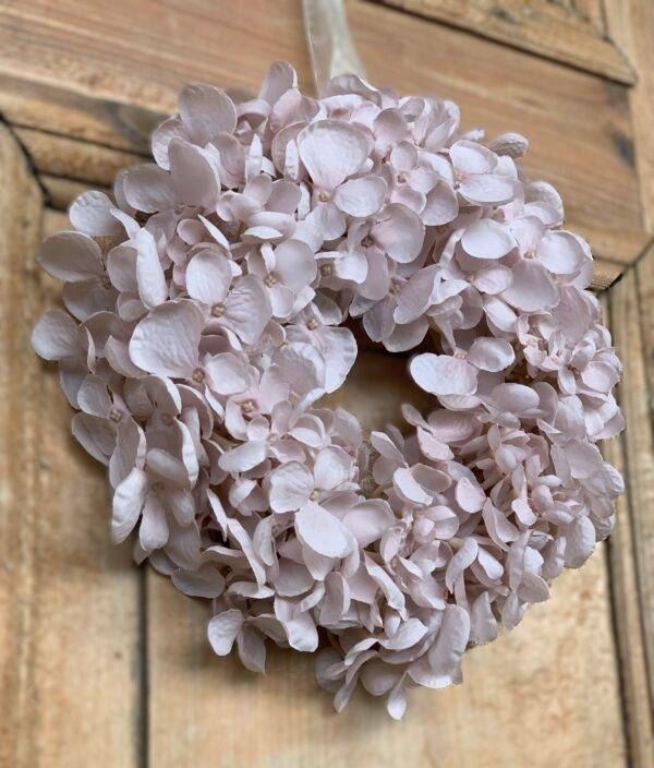 Wianek na drzwi z hortensji pudrowy róż 25 cm