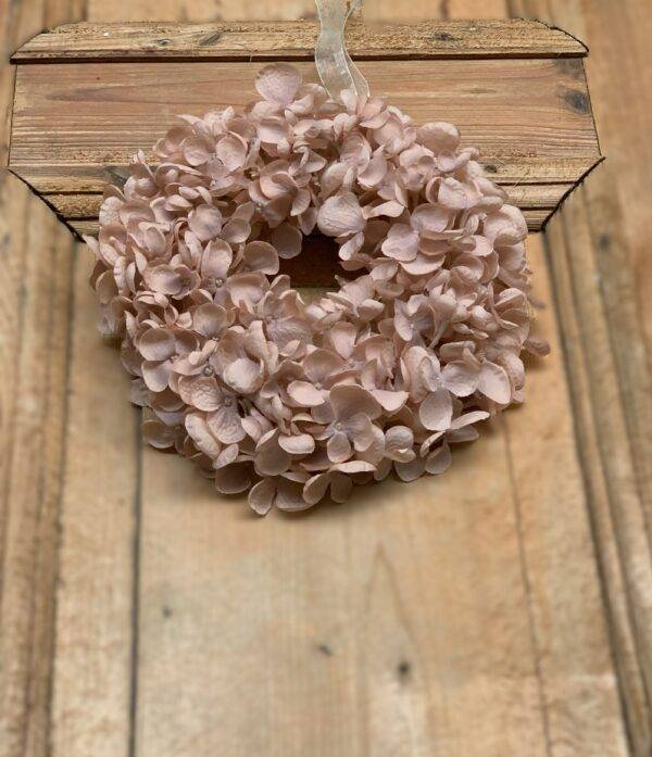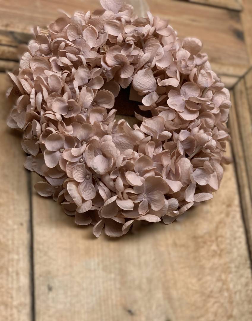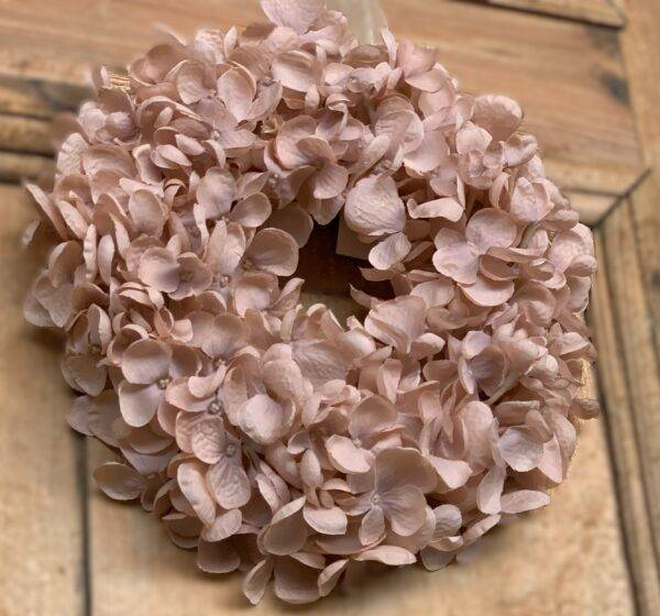 Wianek na drzwi z hortensji pudrowy brąz 25 cm