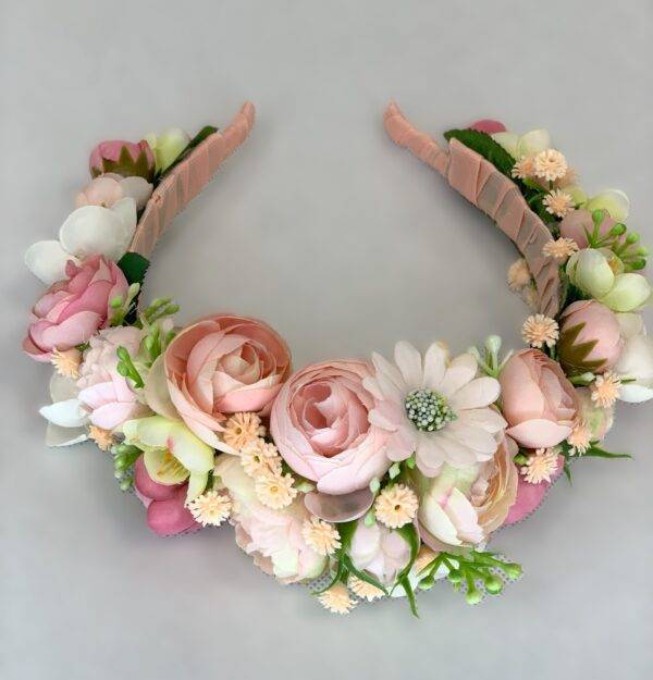 Różowo-kremowa kwiatowa opaska na głowę 06
