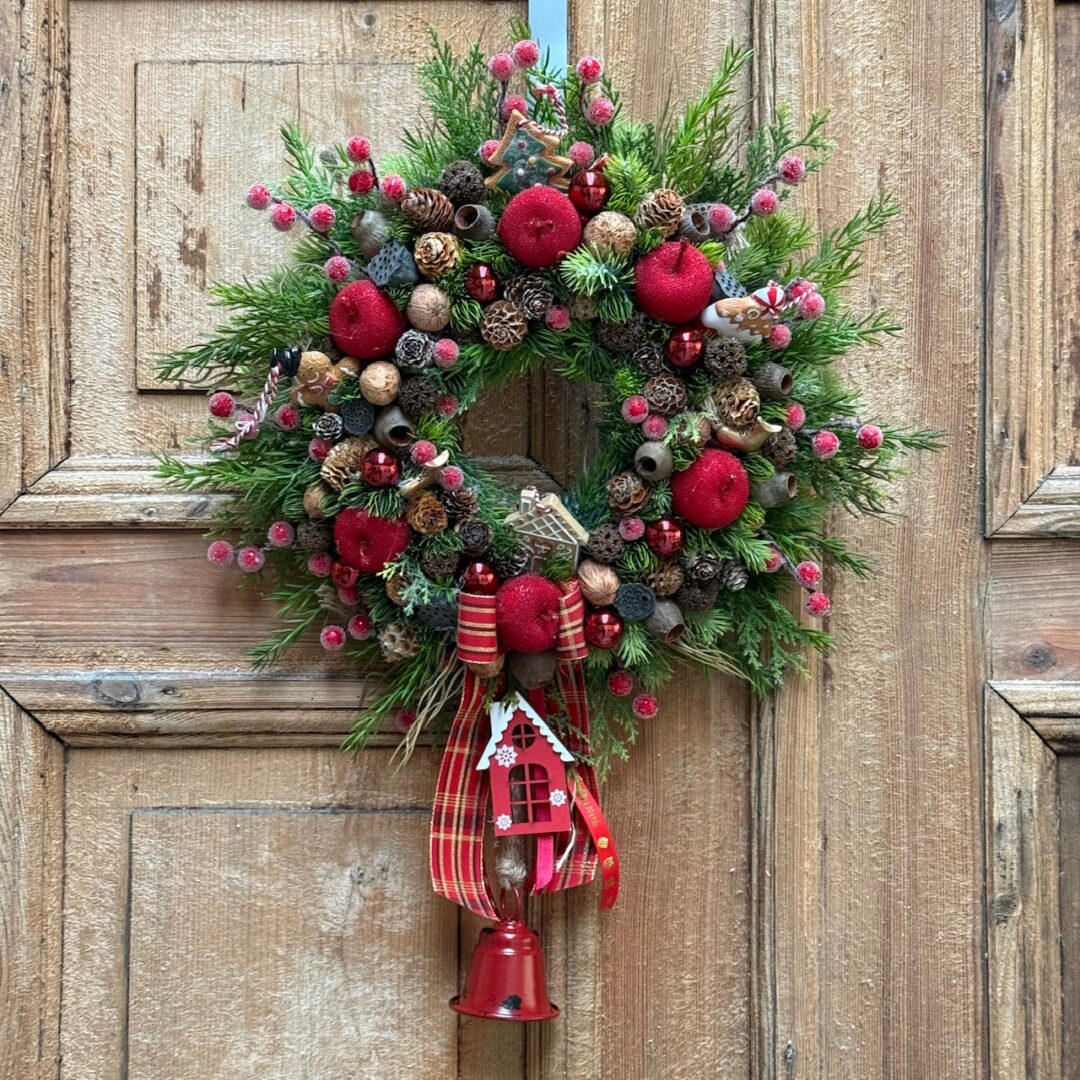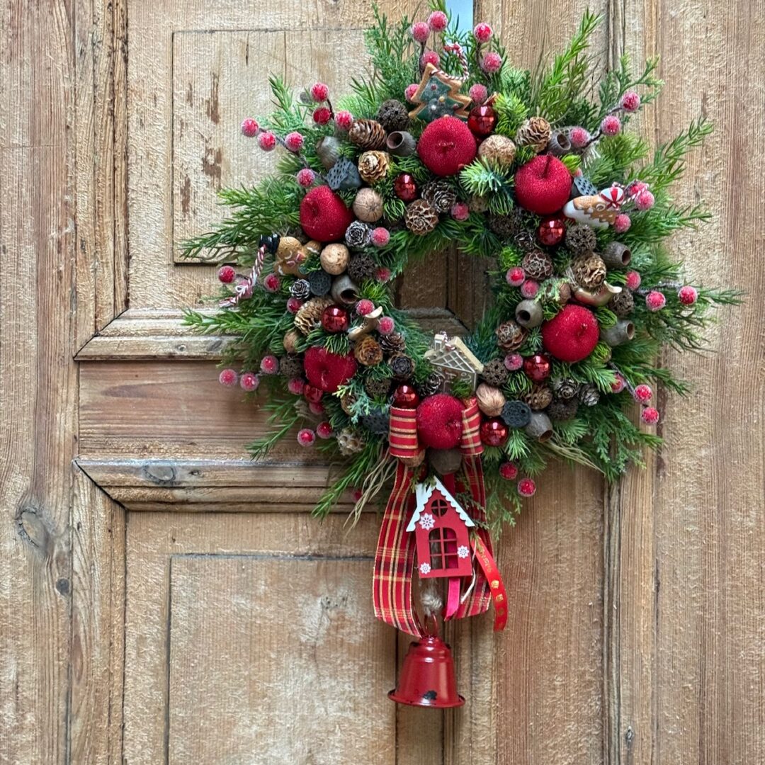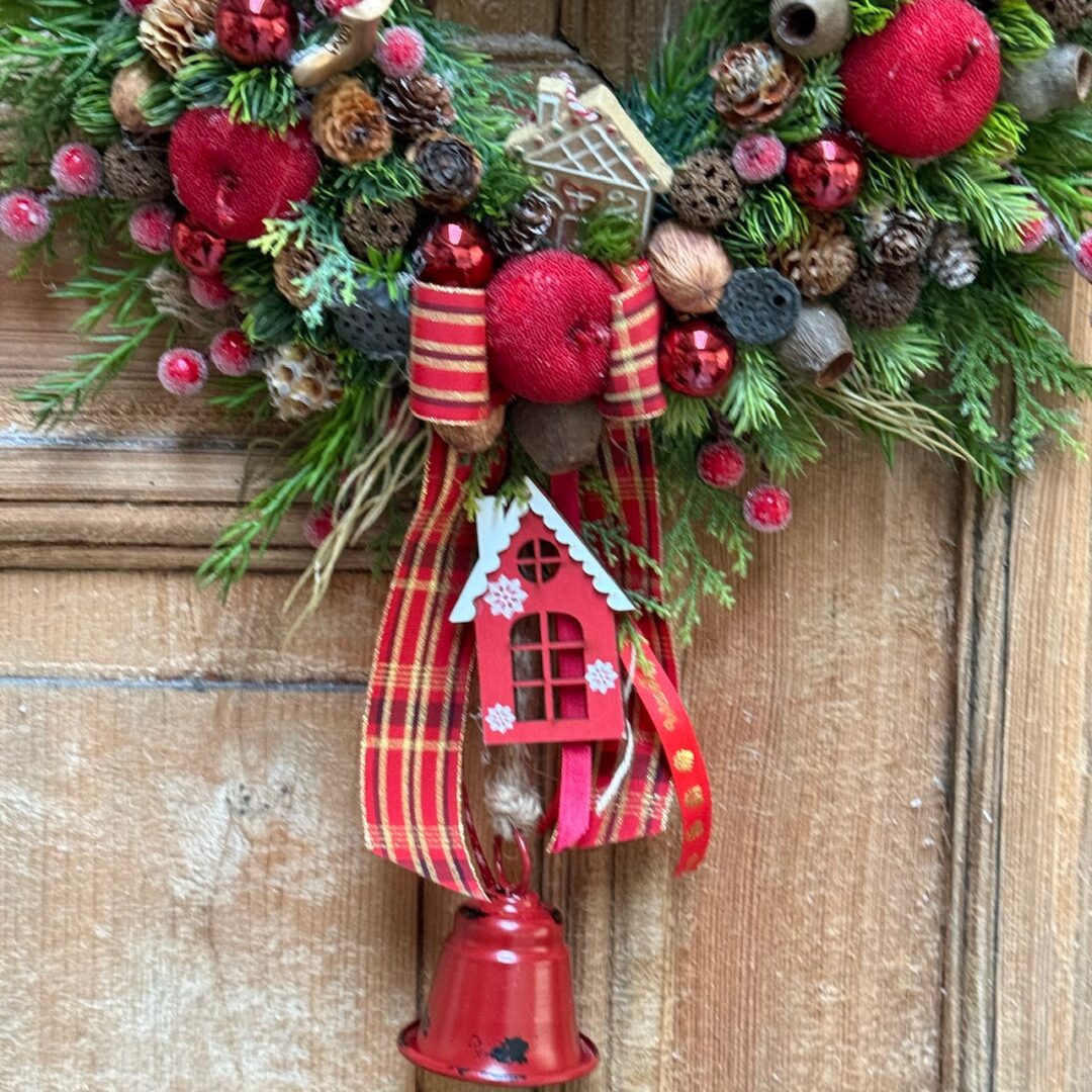 Wianek wykonany ze sztucznych świerkowych gałązek.