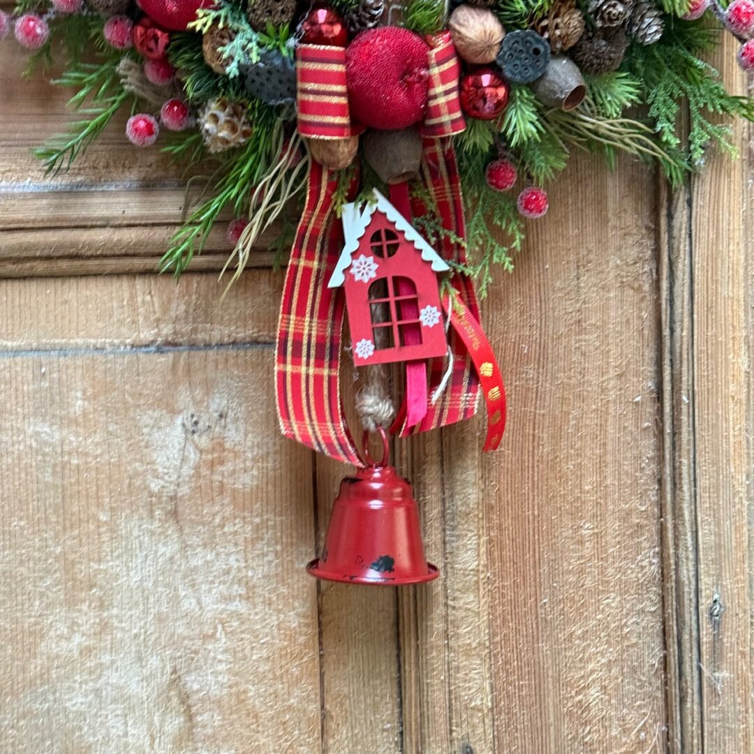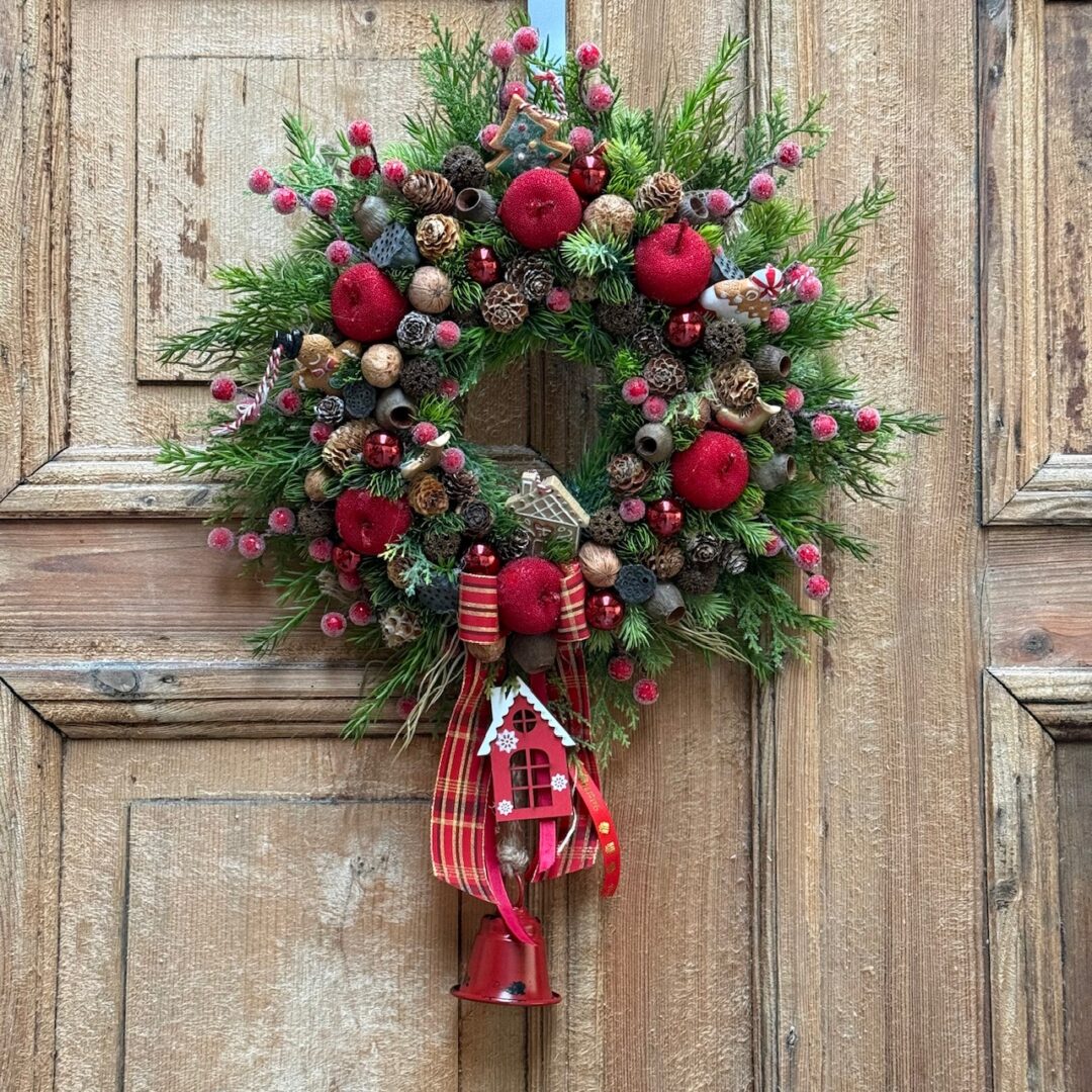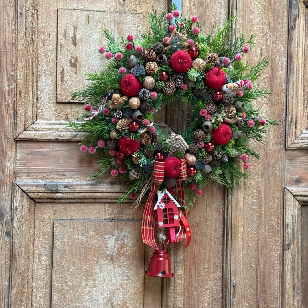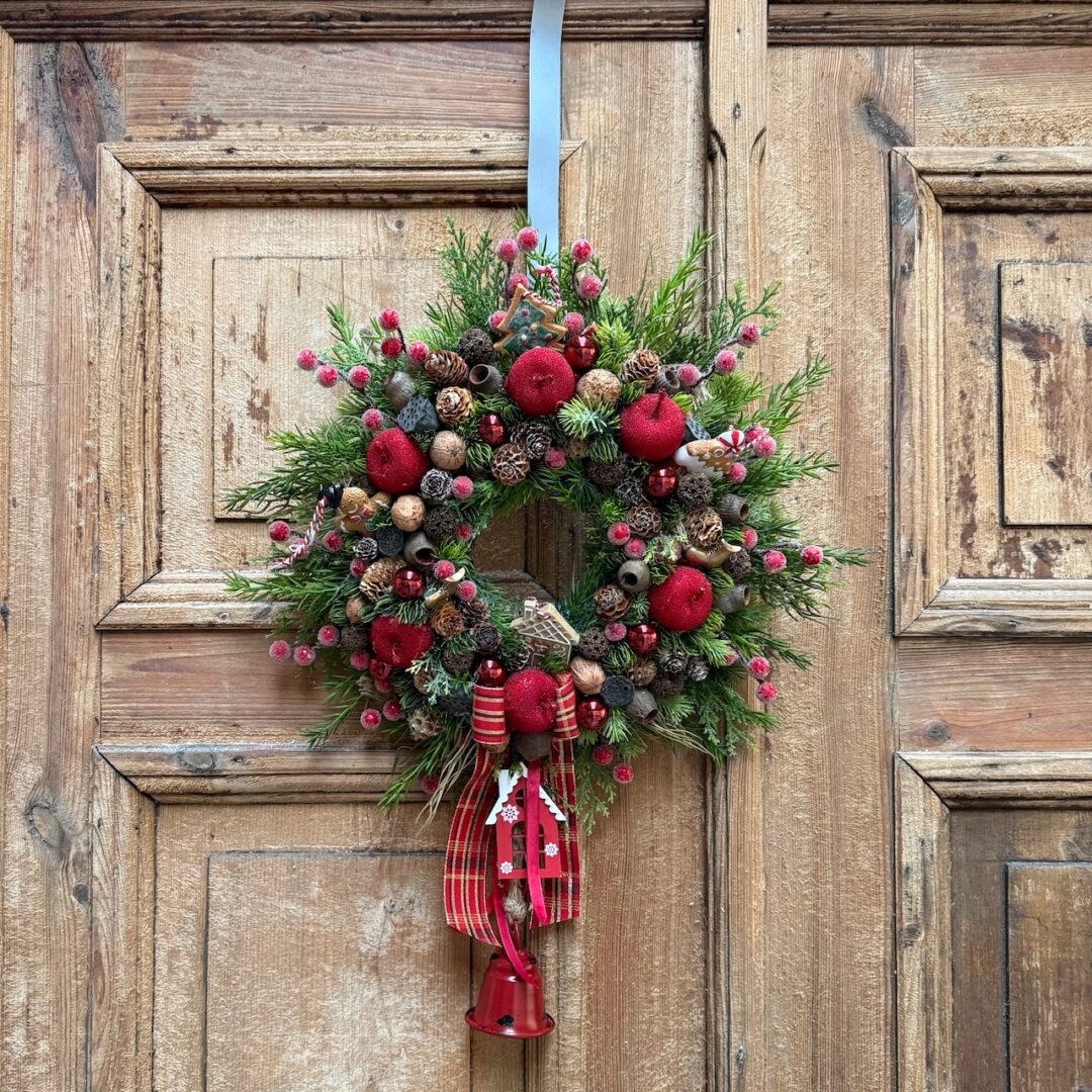 Wianek wykonany ze sztucznych świerkowych gałązek.