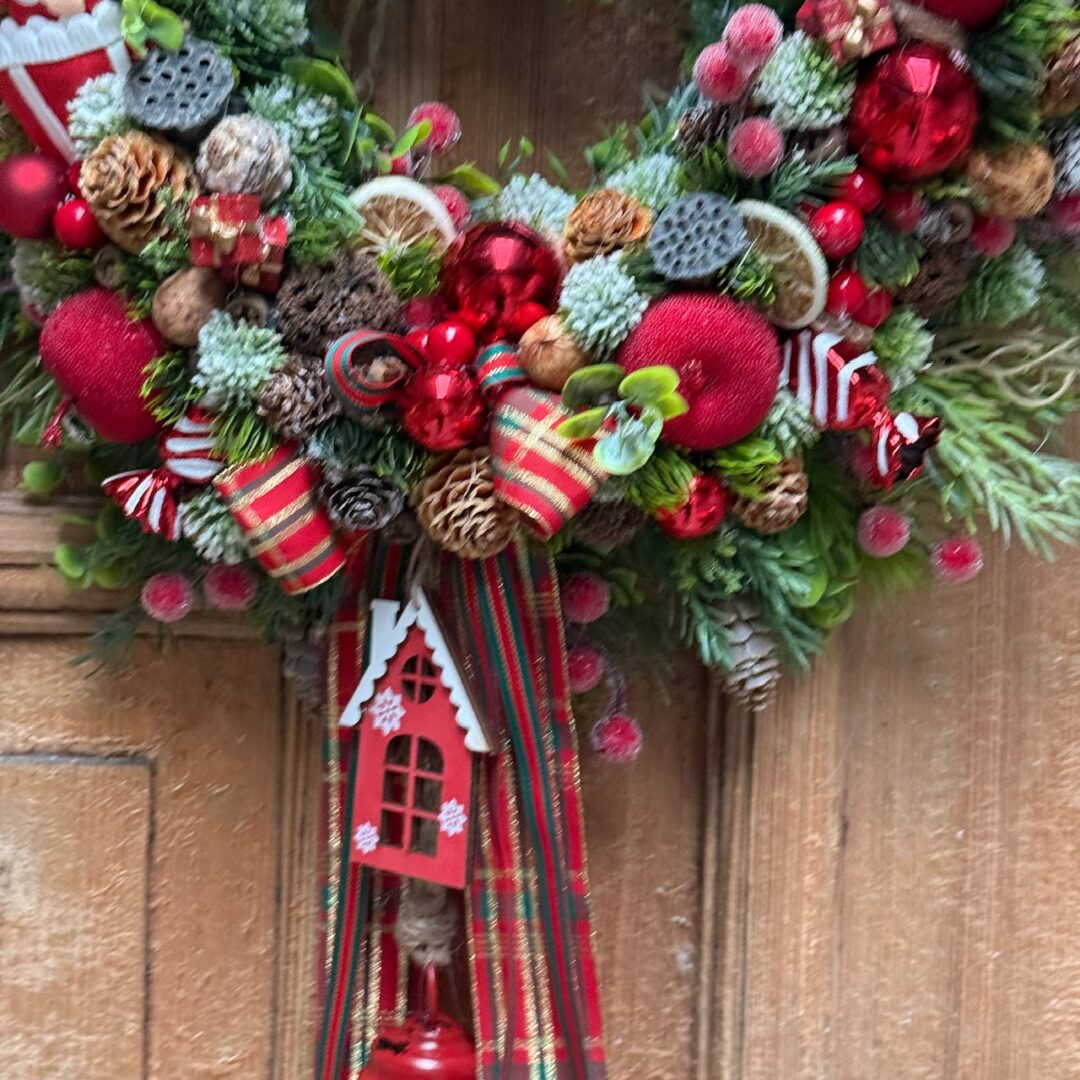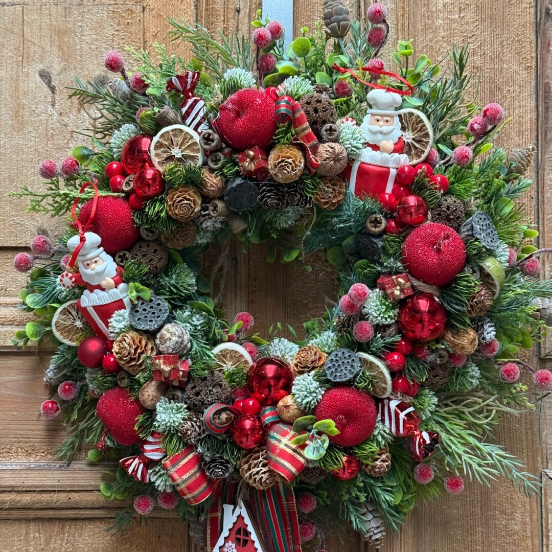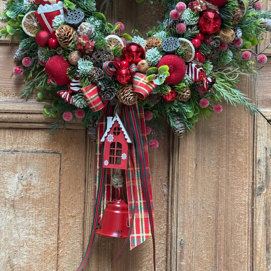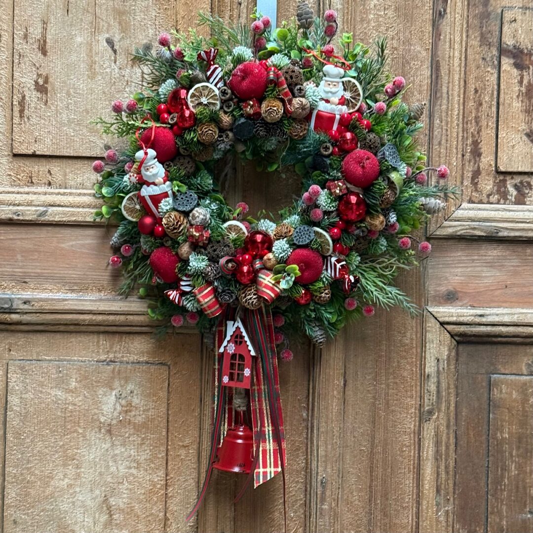 Wianek wykonany ze sztucznych świerkowych gałązek.