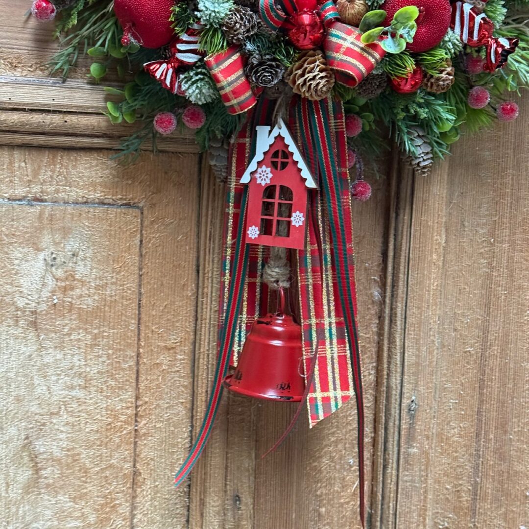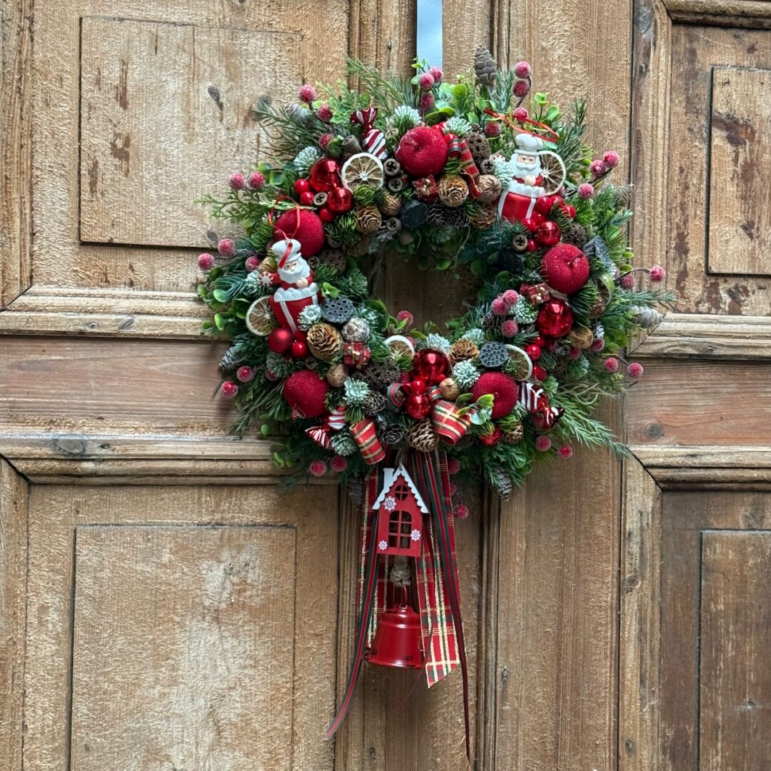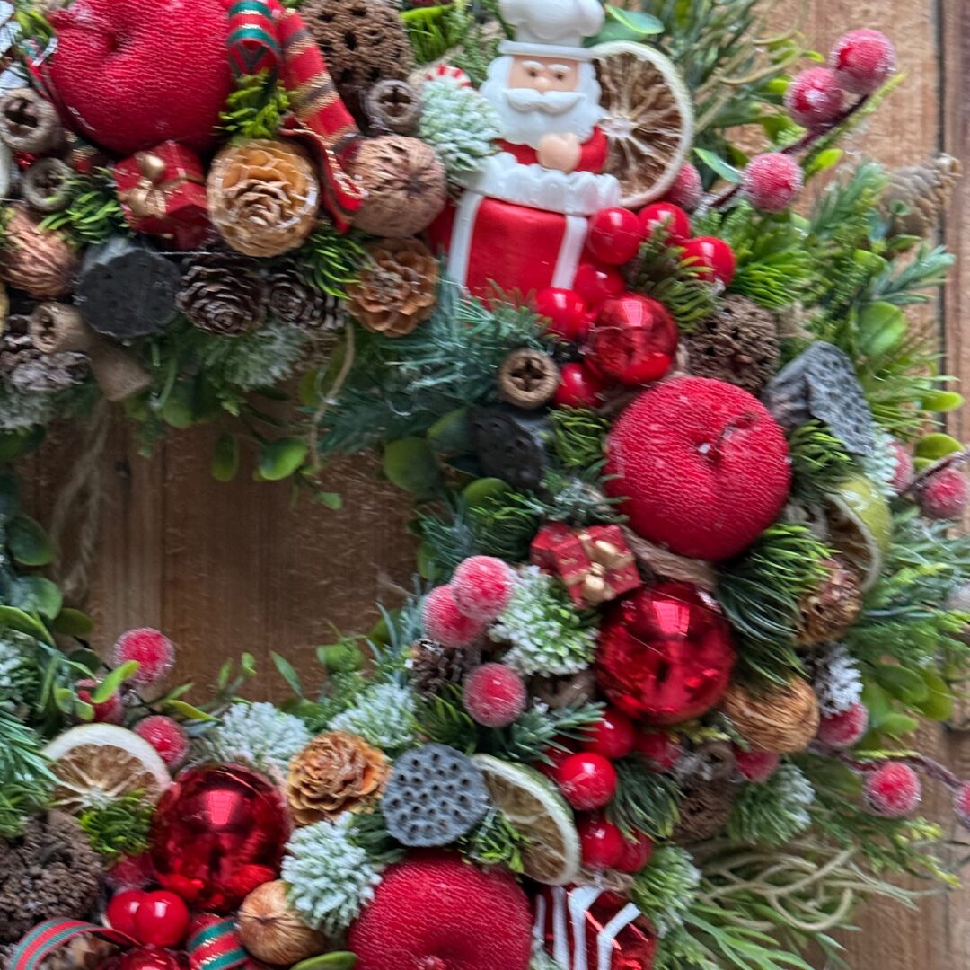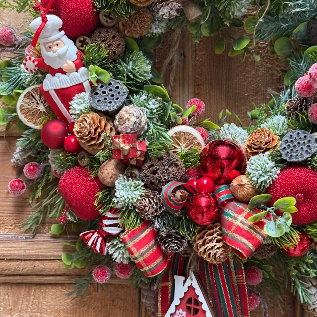 Wianek wykonany ze sztucznych świerkowych gałązek.