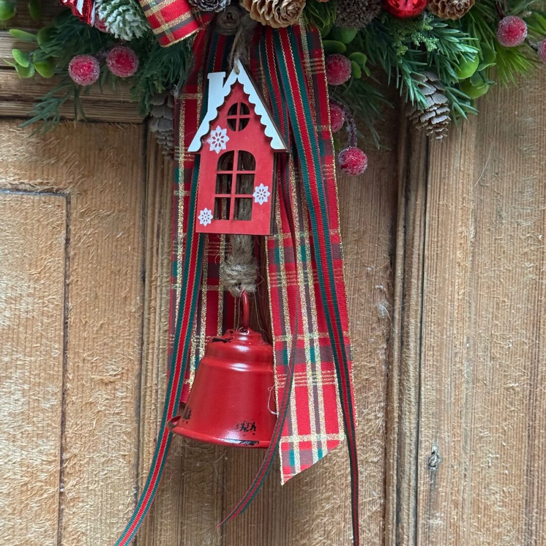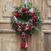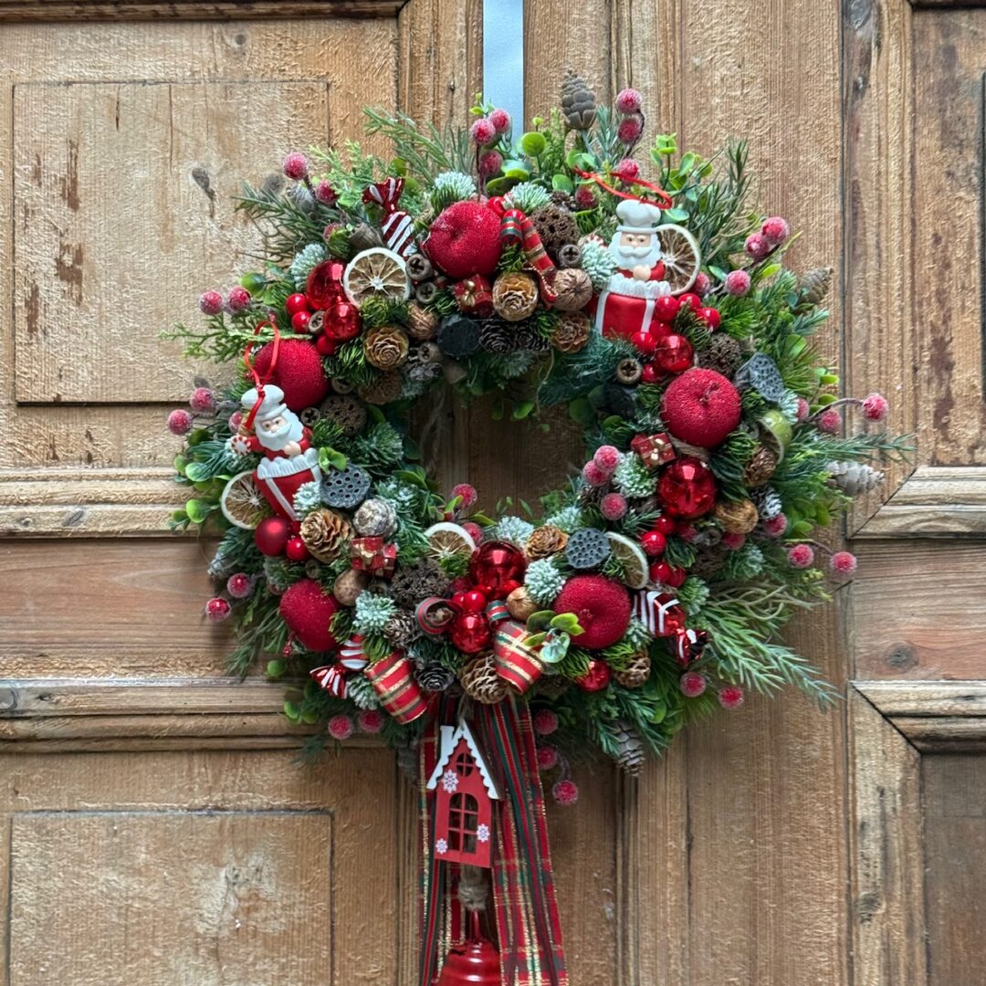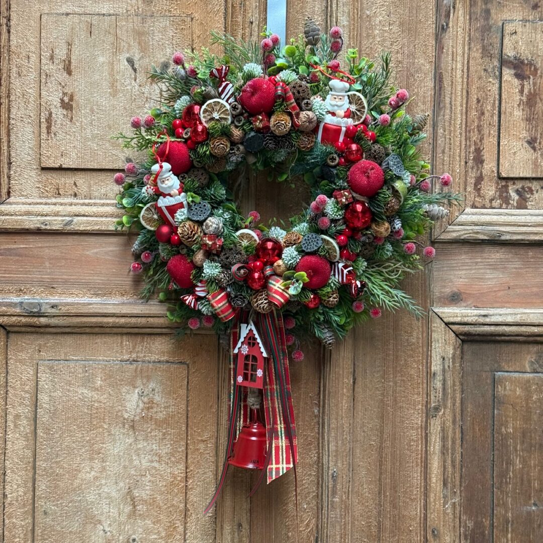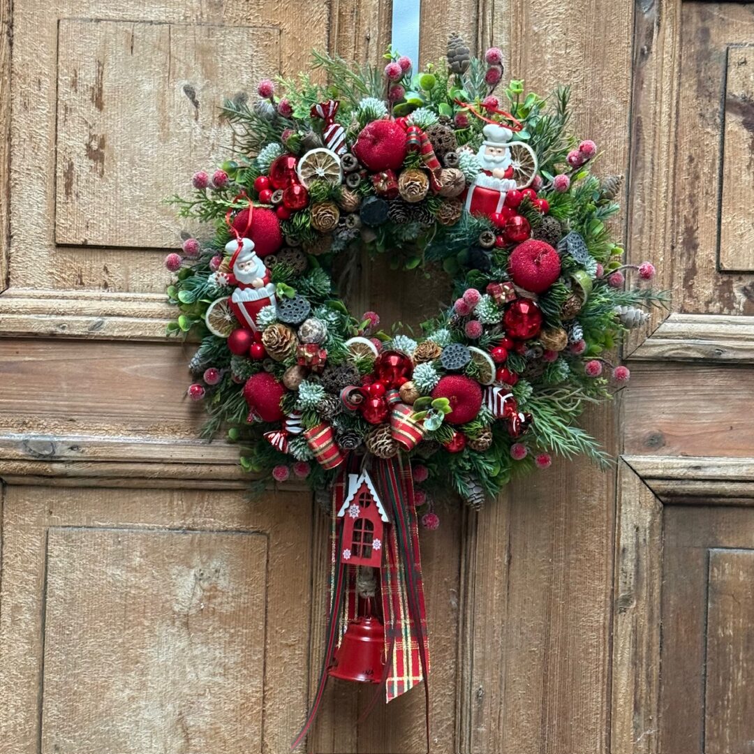 Wianek wykonany ze sztucznych świerkowych gałązek.
