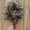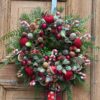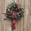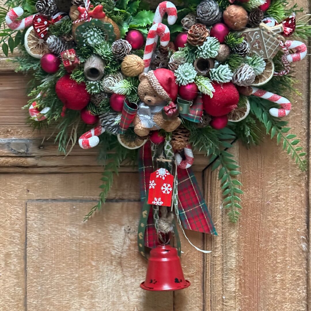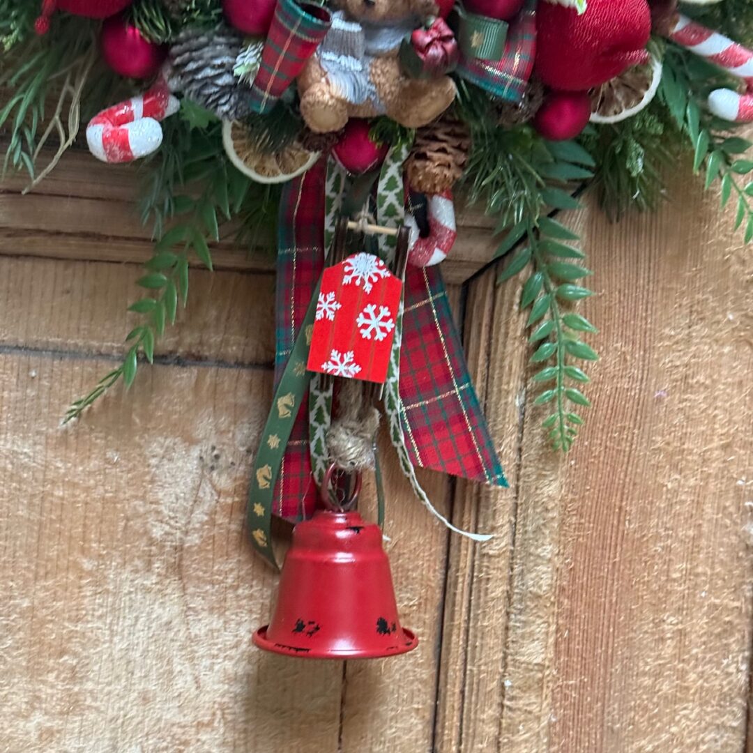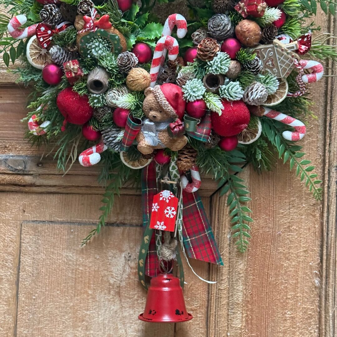 Wianek świąteczny 40 cm czerwony z misiem nr B466