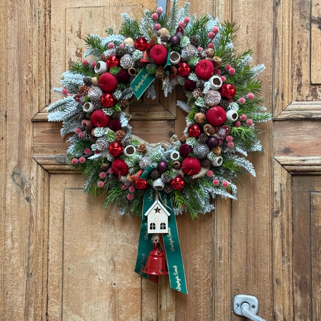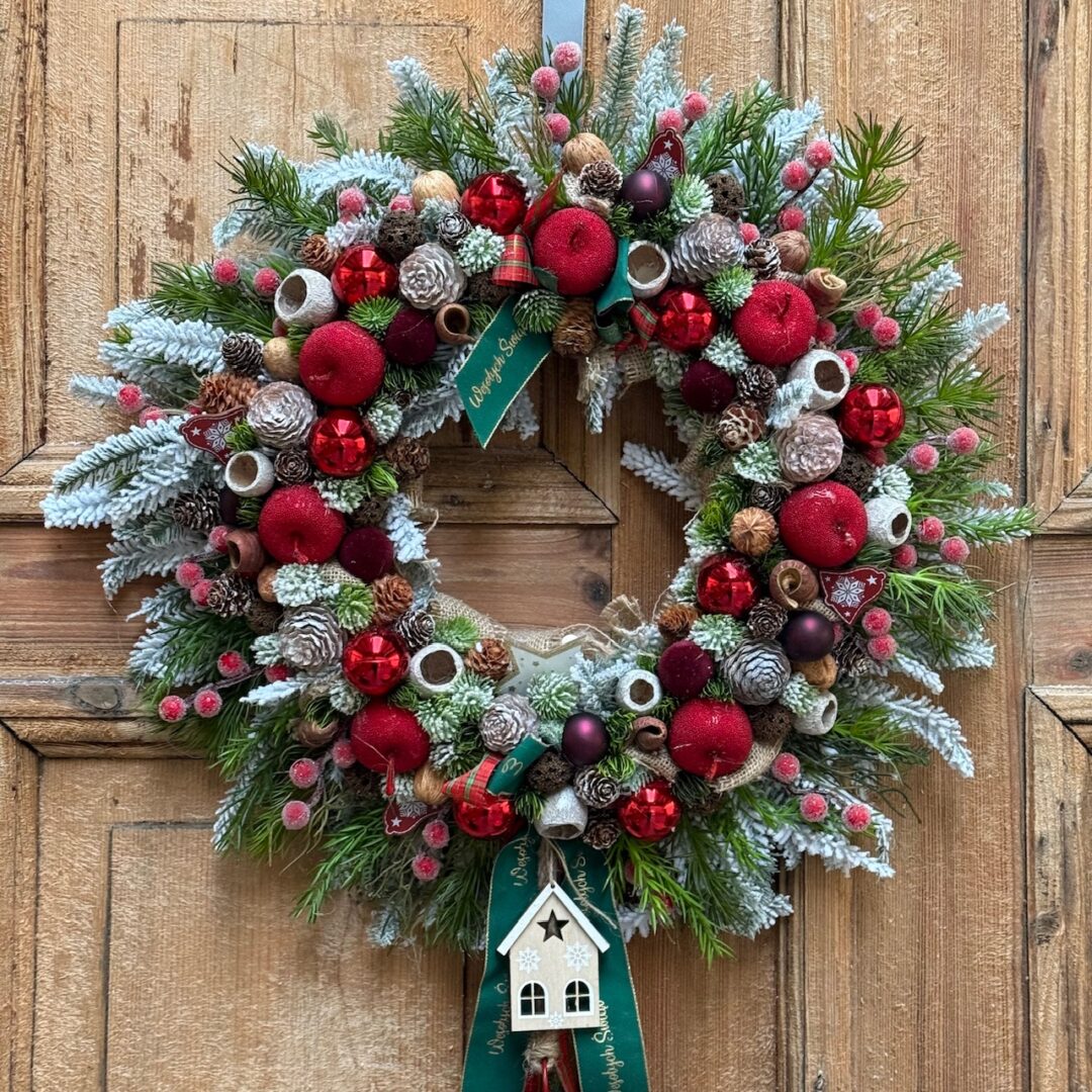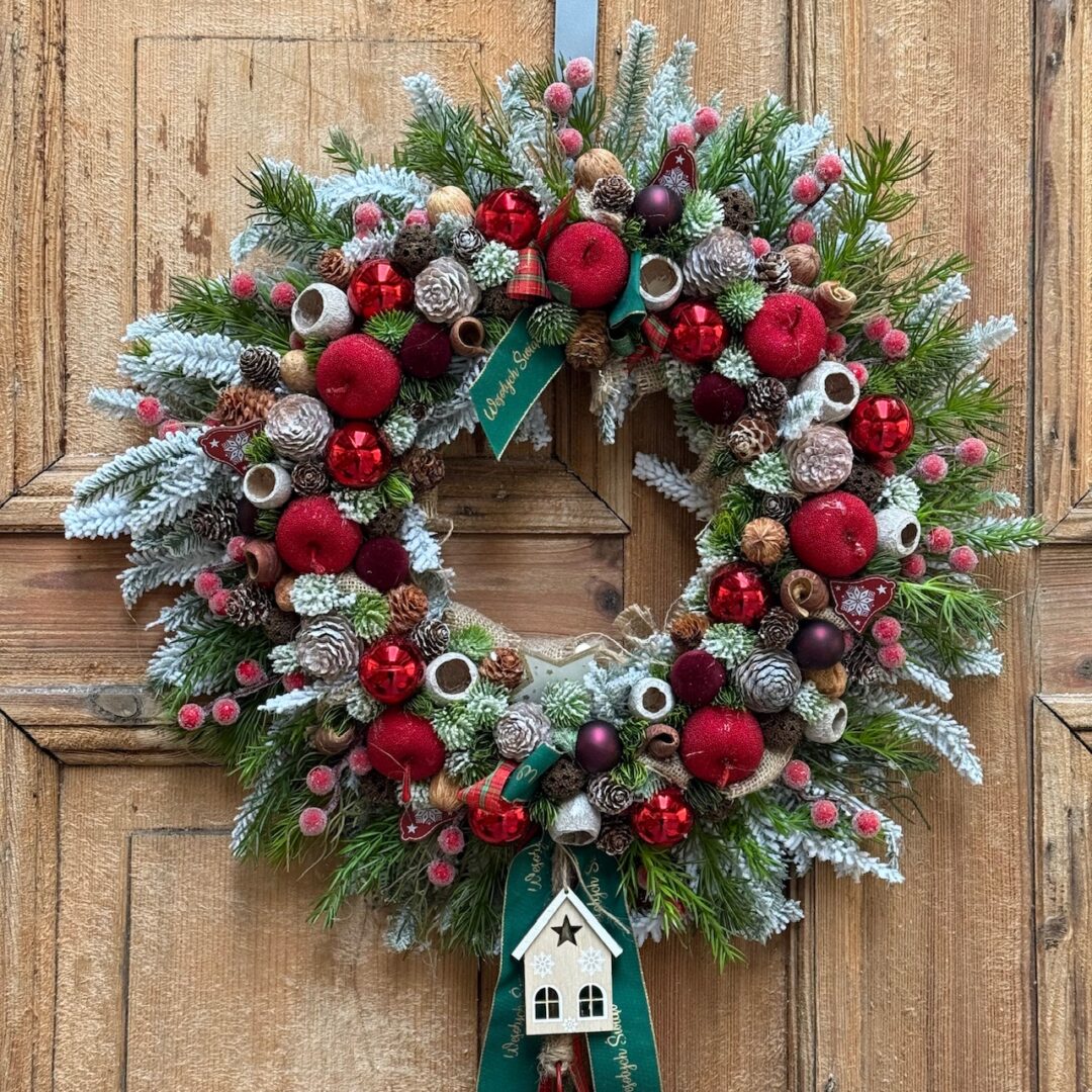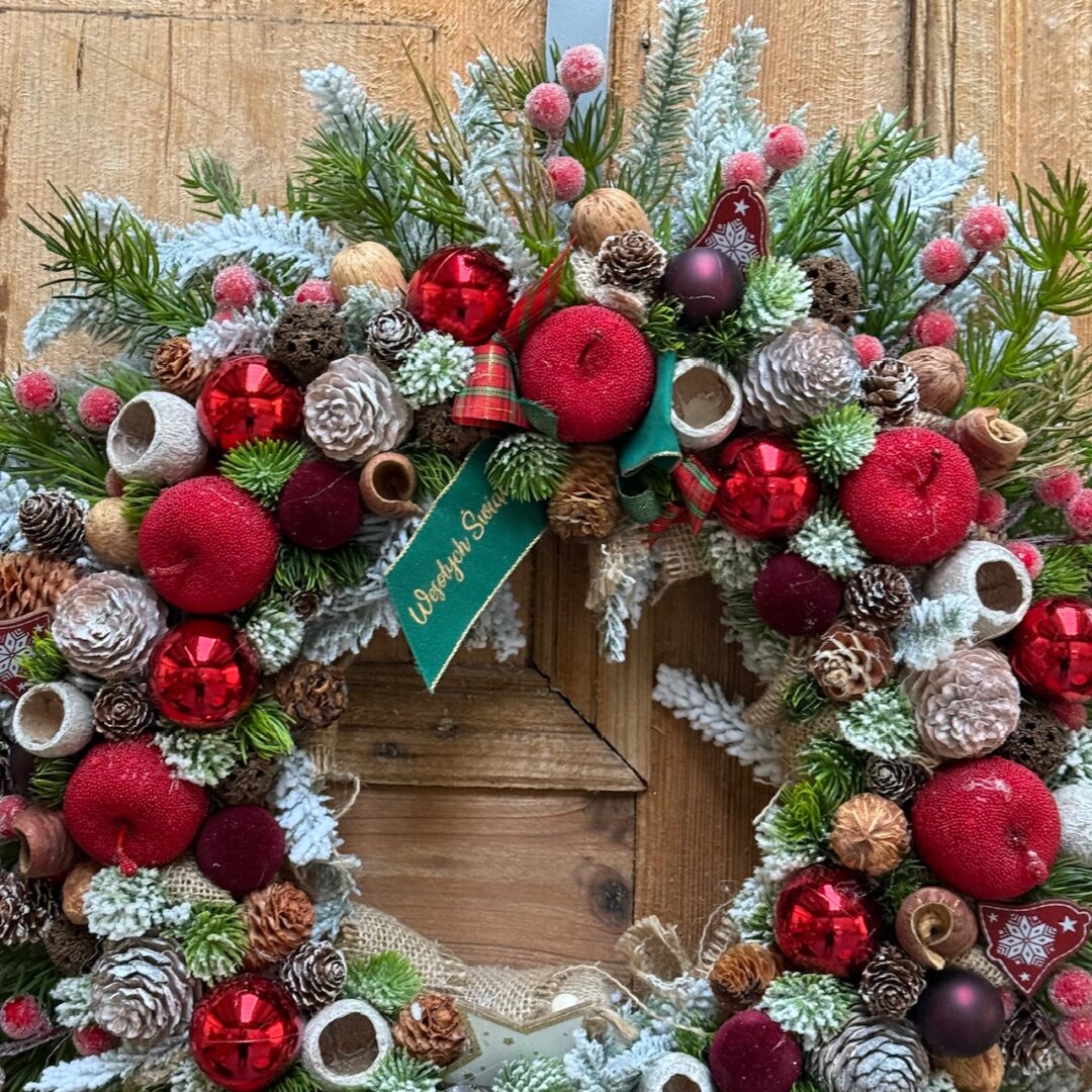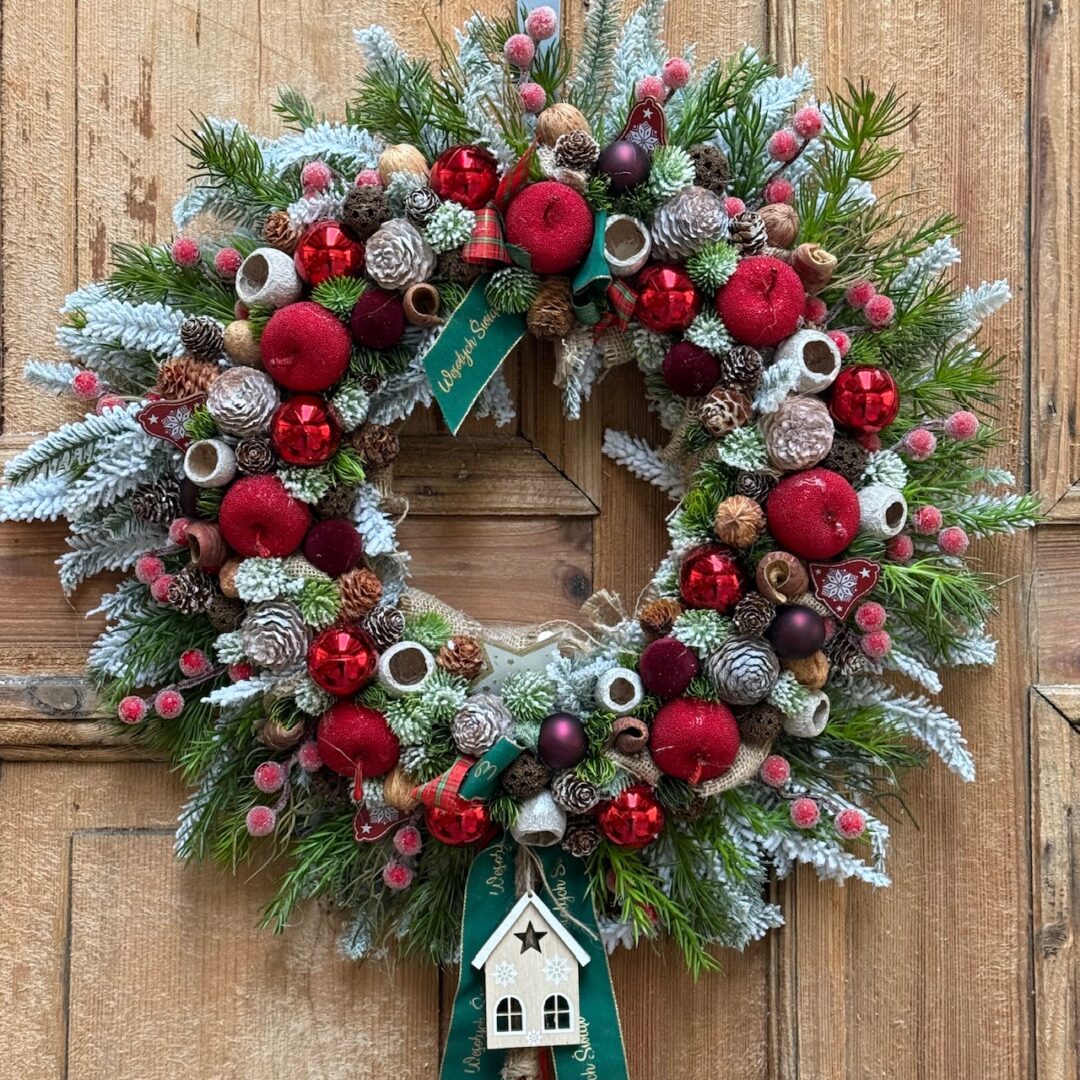 Wianek wykonany ze sztucznych świerkowych gałązek.