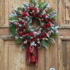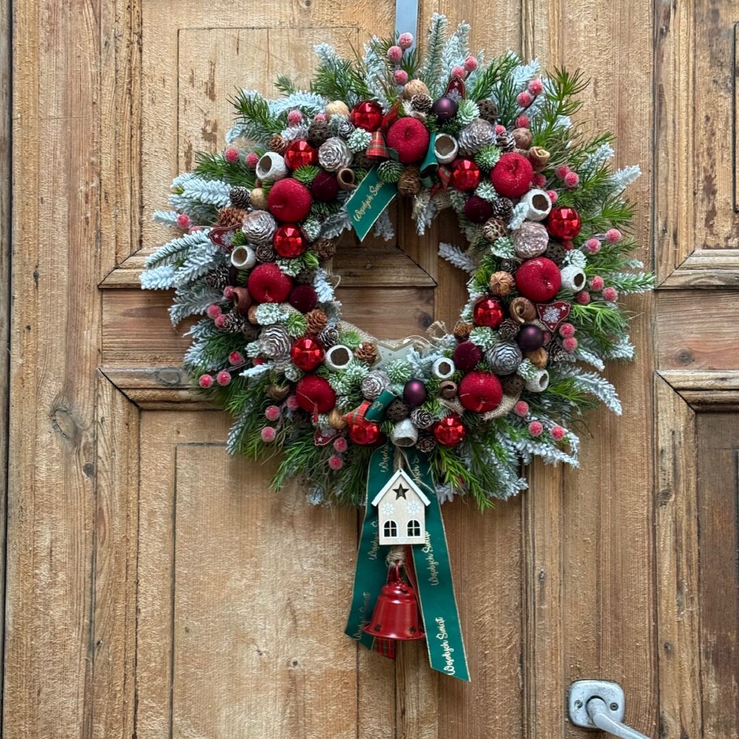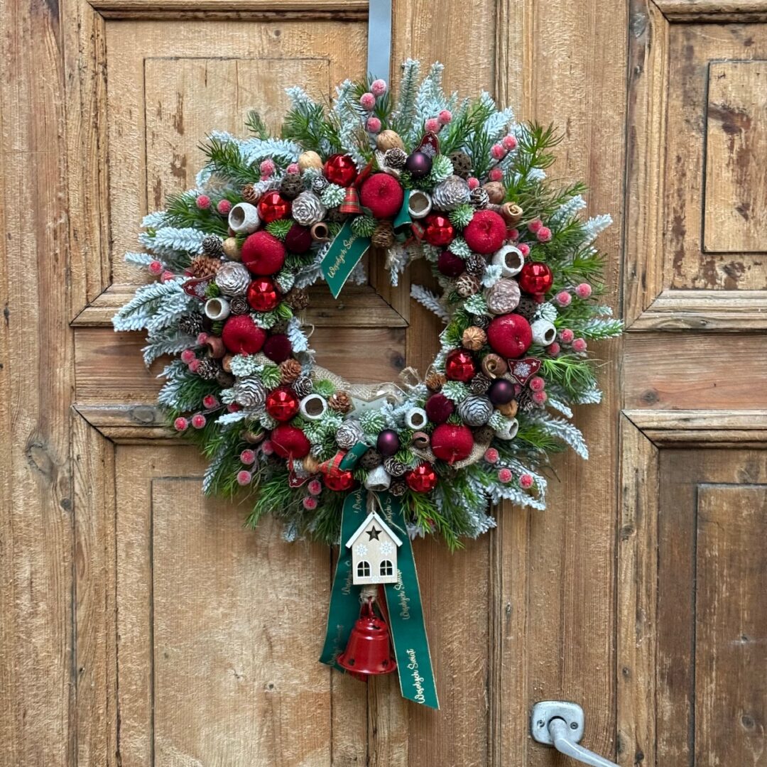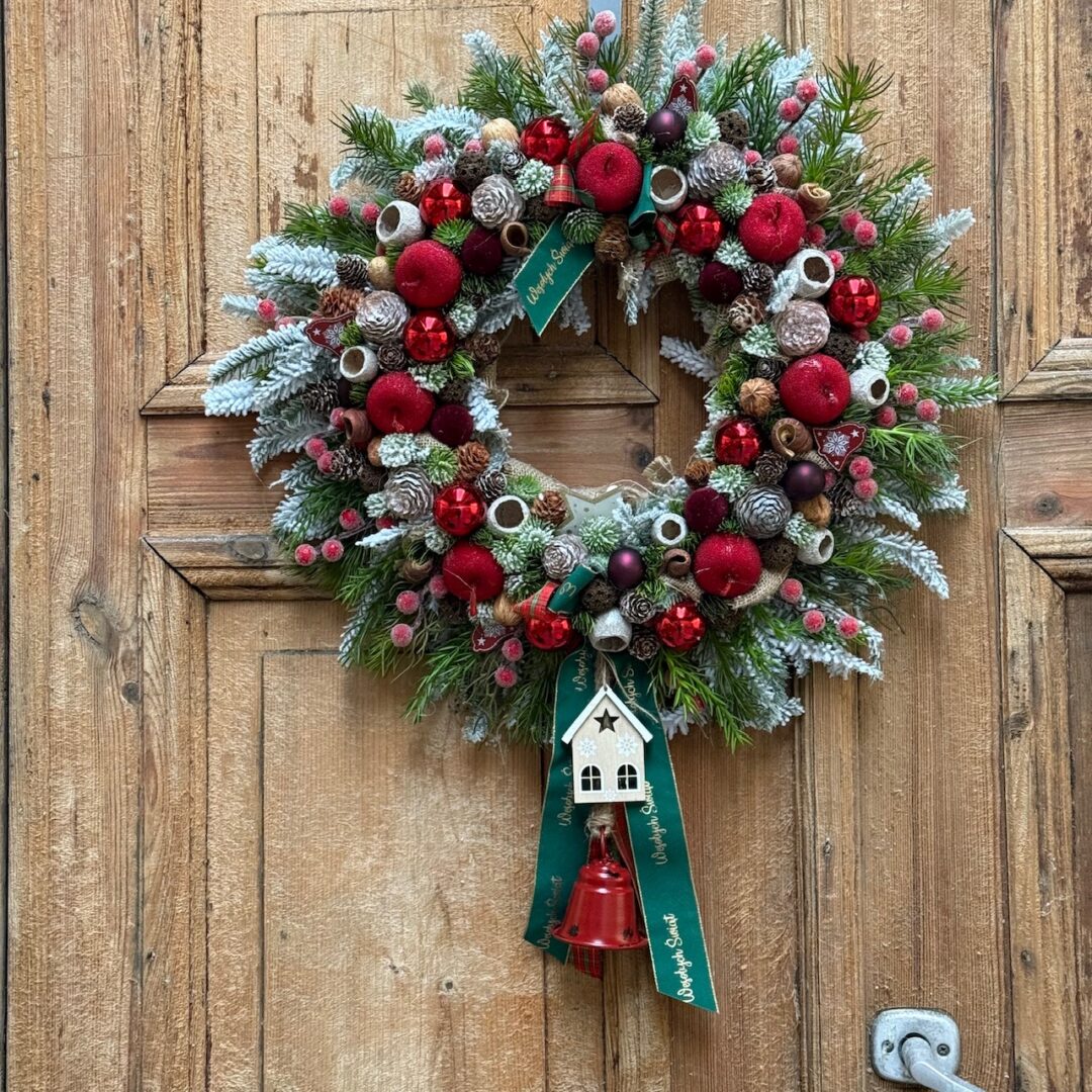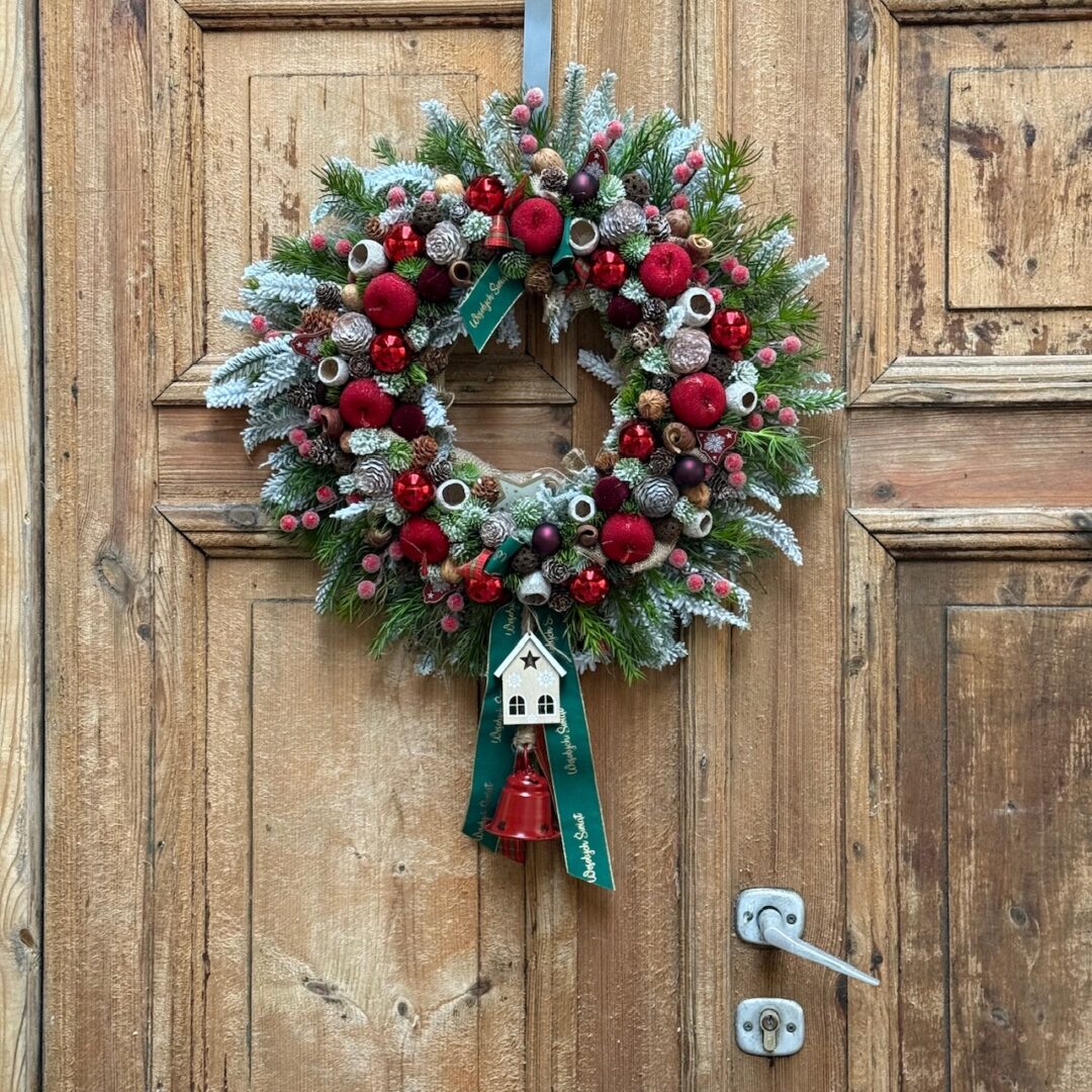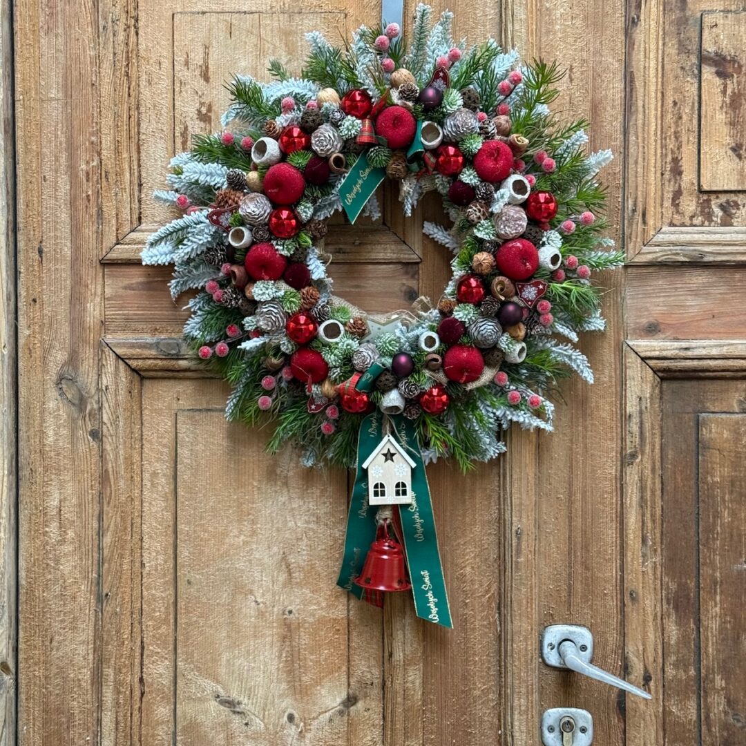 Wianek wykonany ze sztucznych świerkowych gałązek.