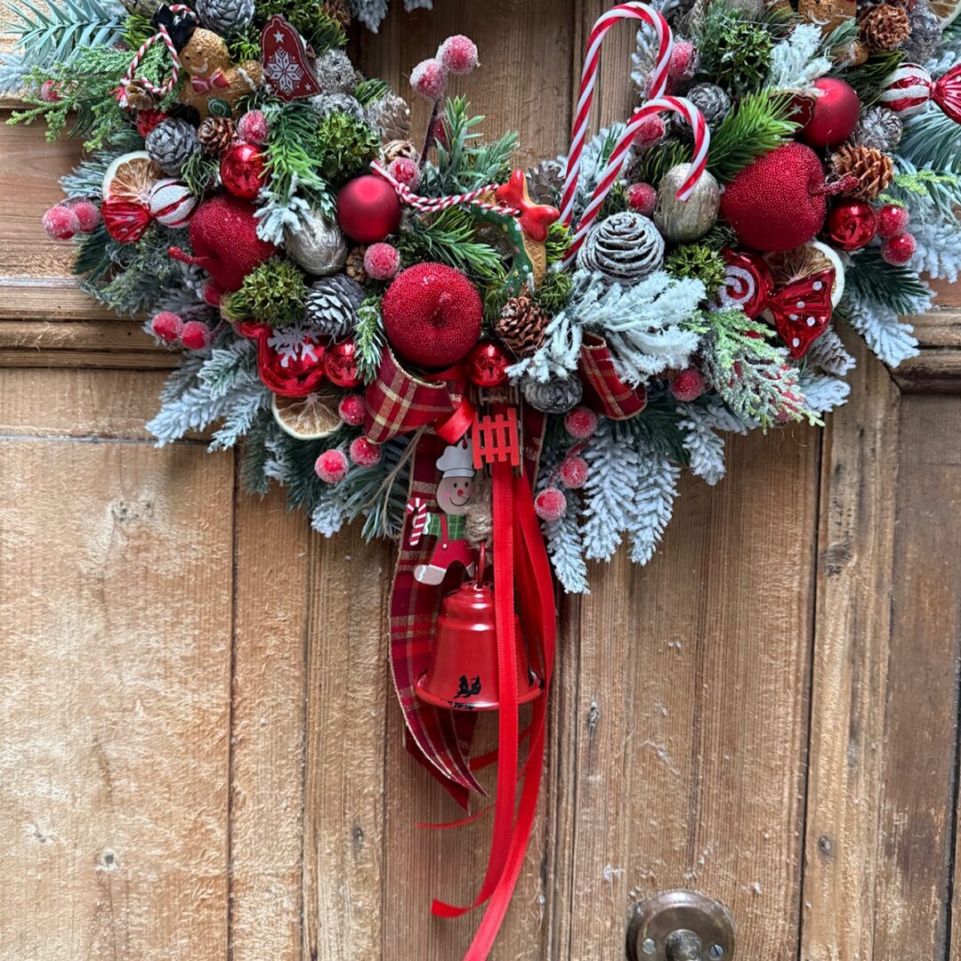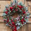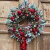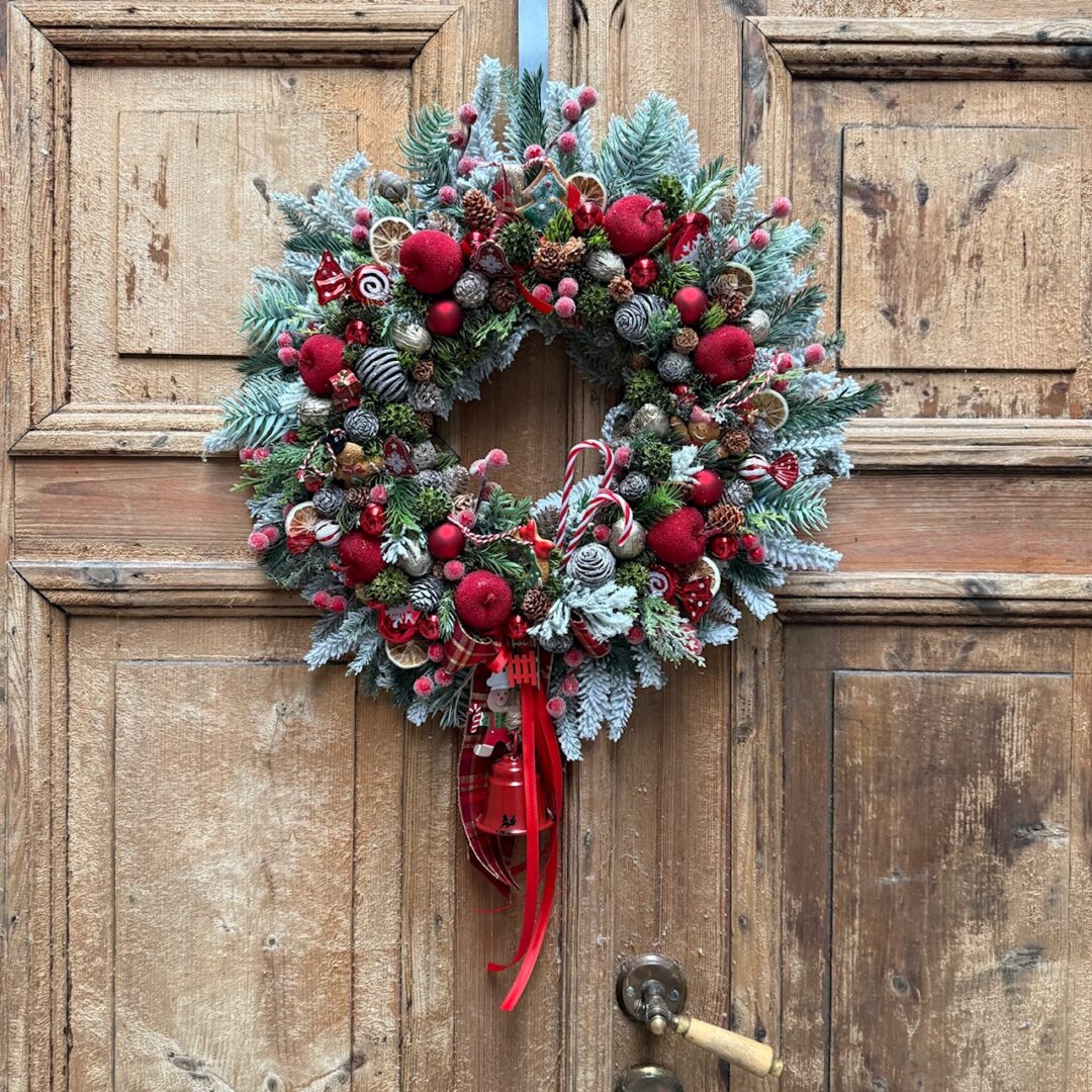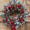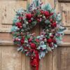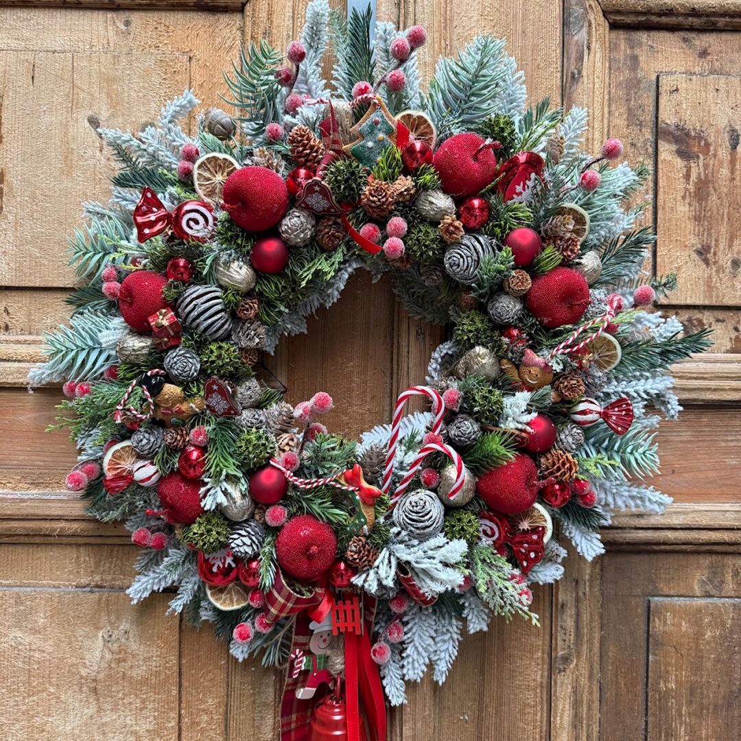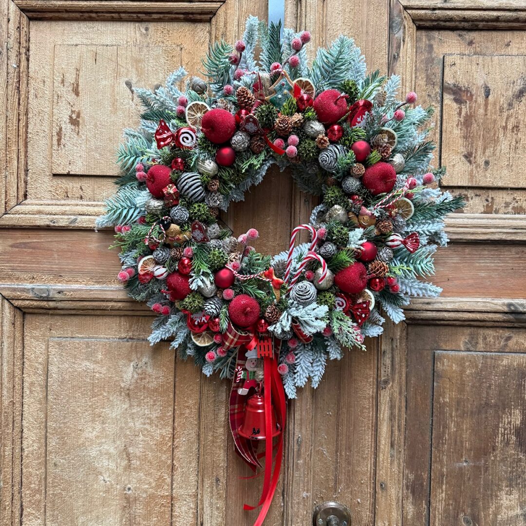Wianek wykonany ze sztucznych świerkowych gałązek.