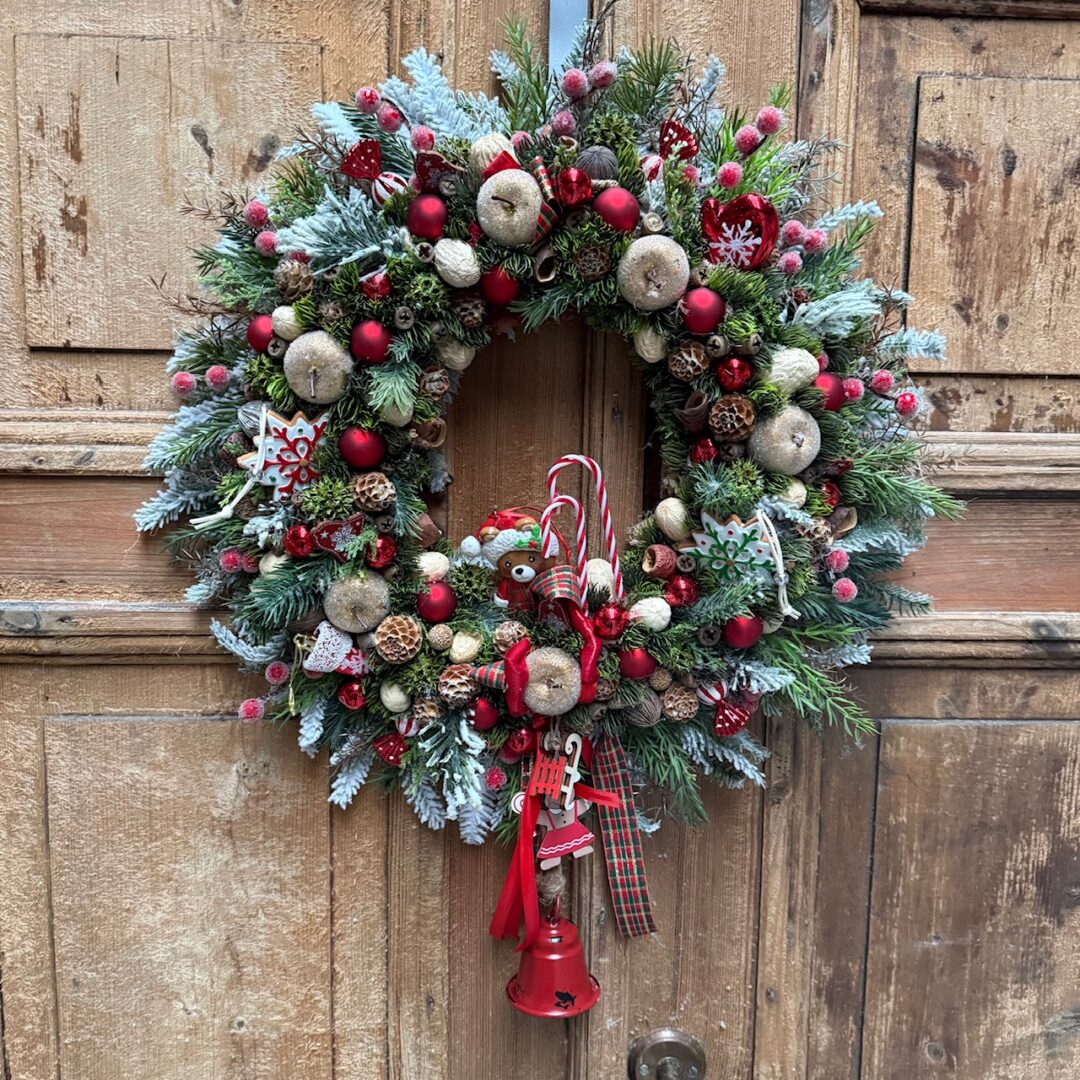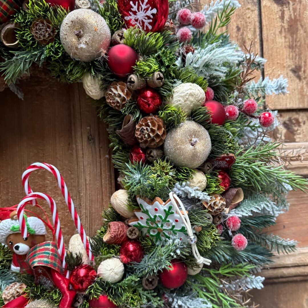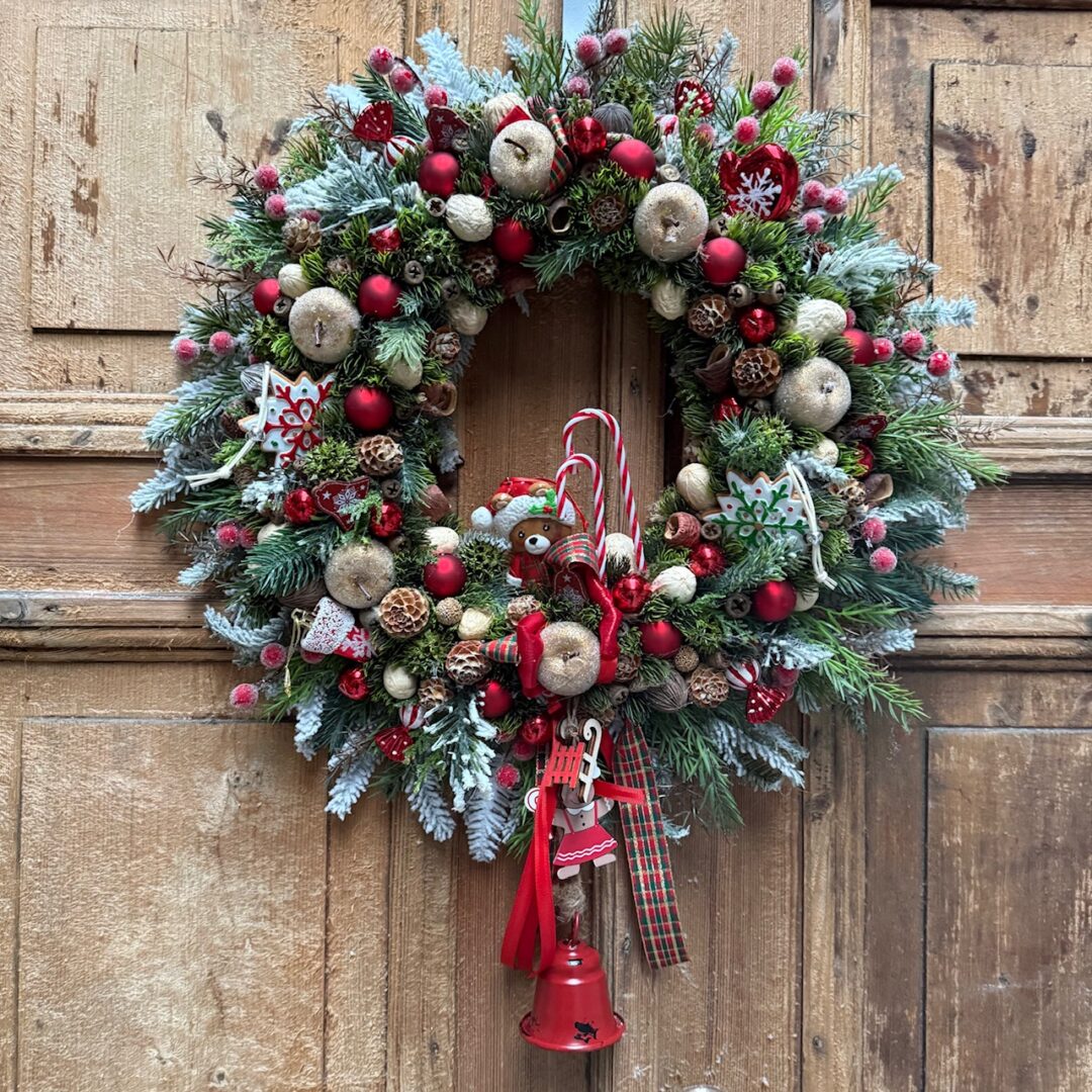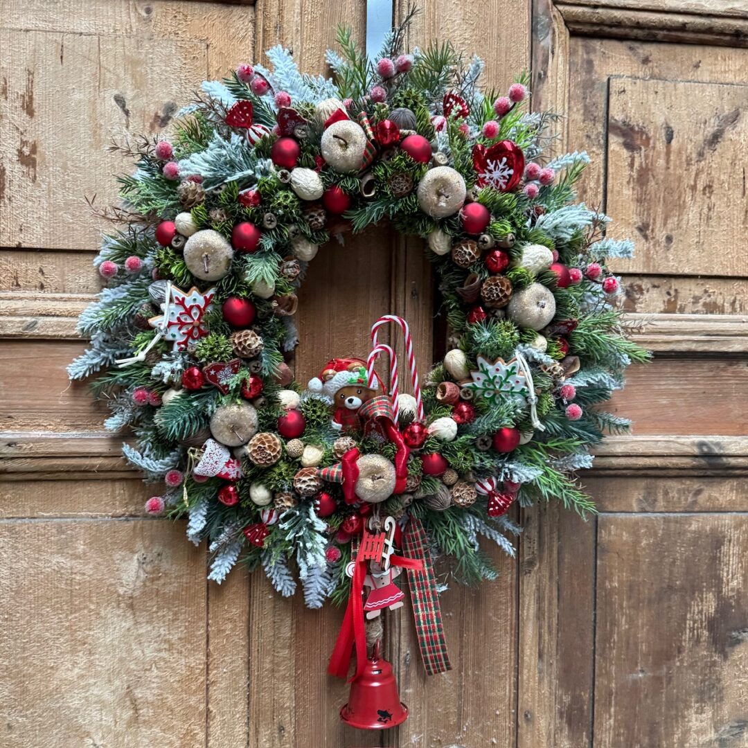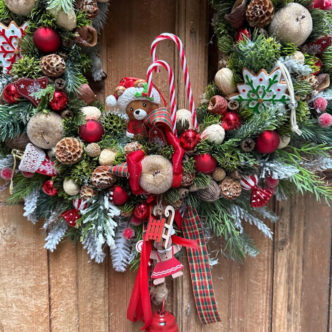 Wianek wykonany ze sztucznych świerkowych gałązek.