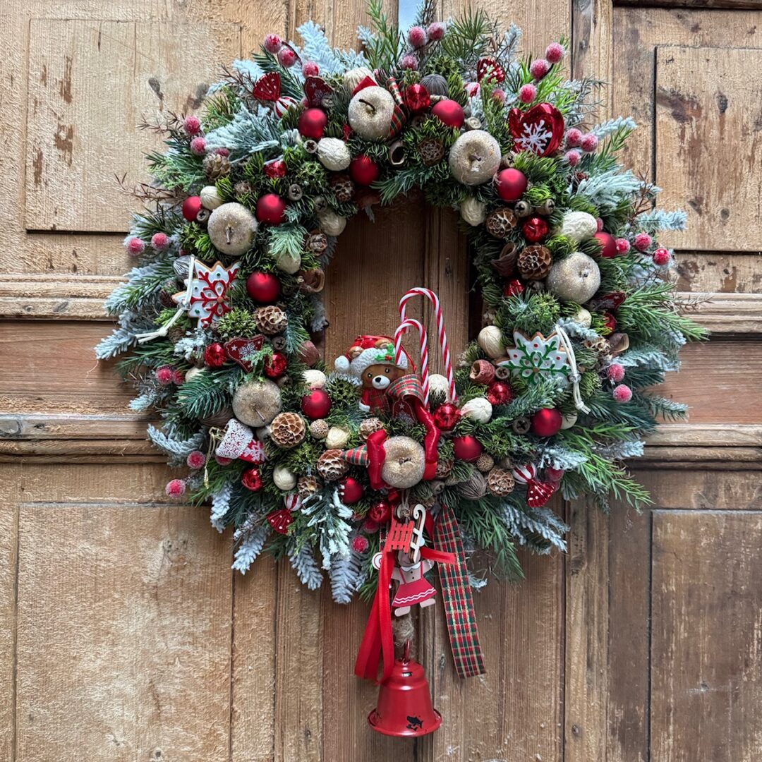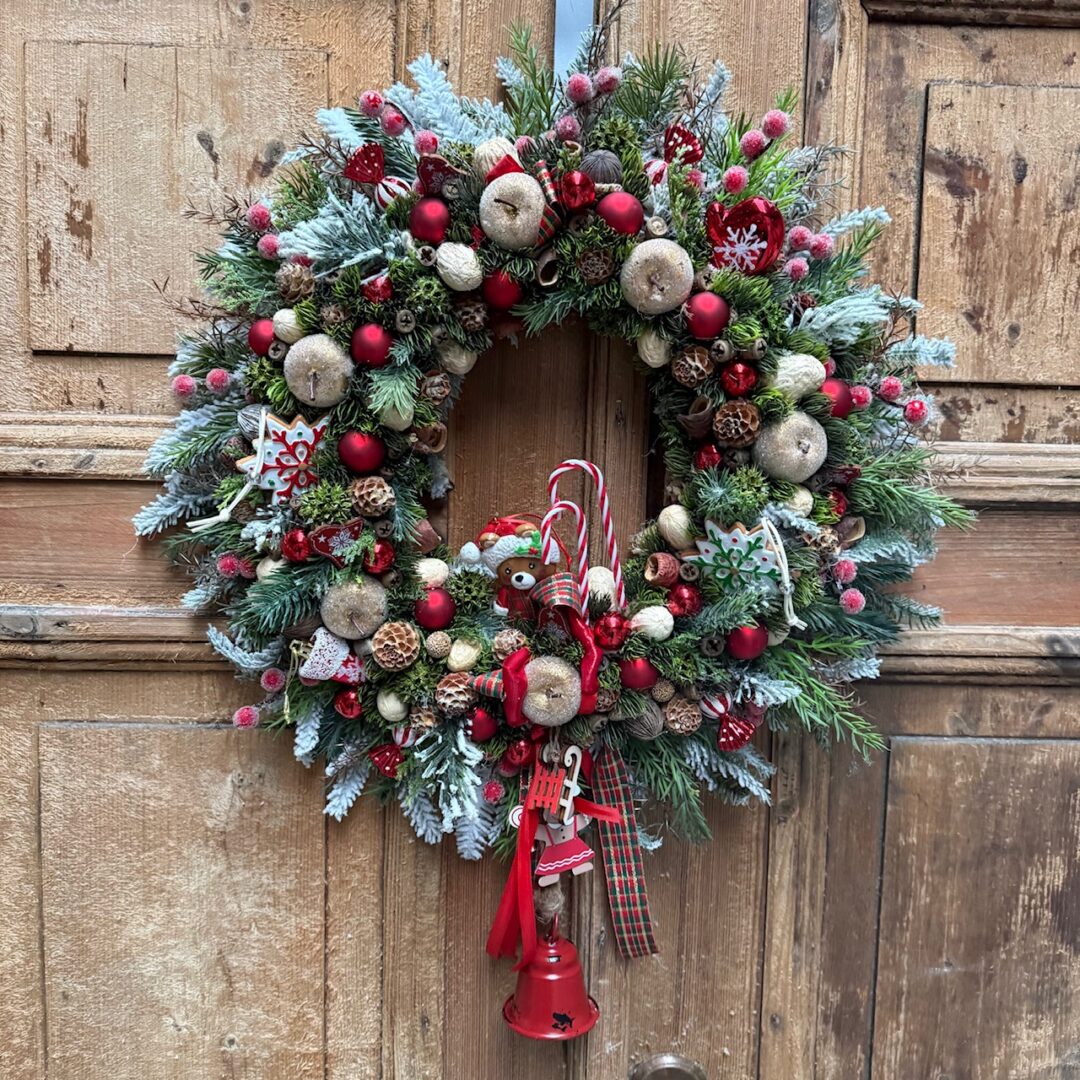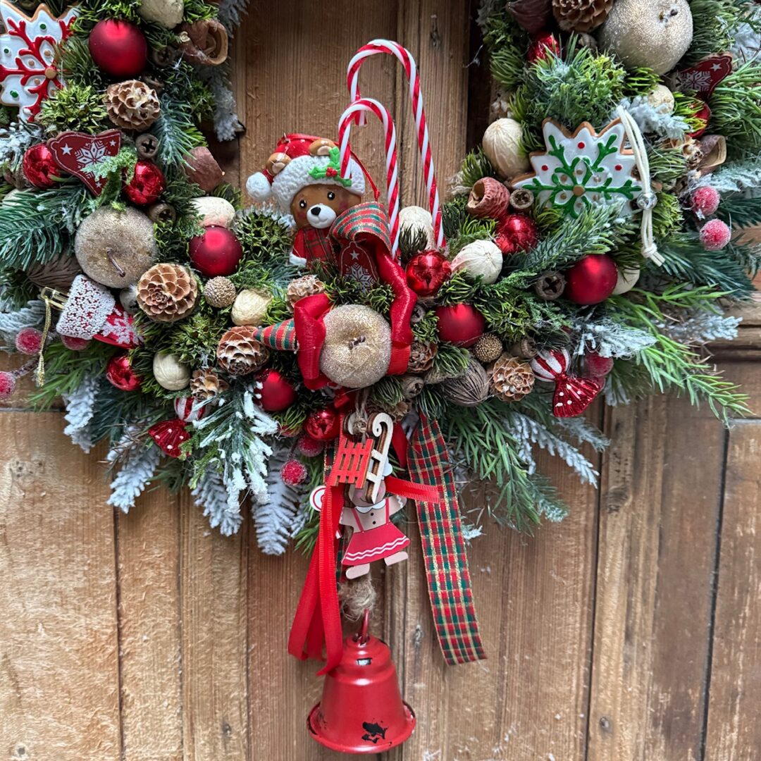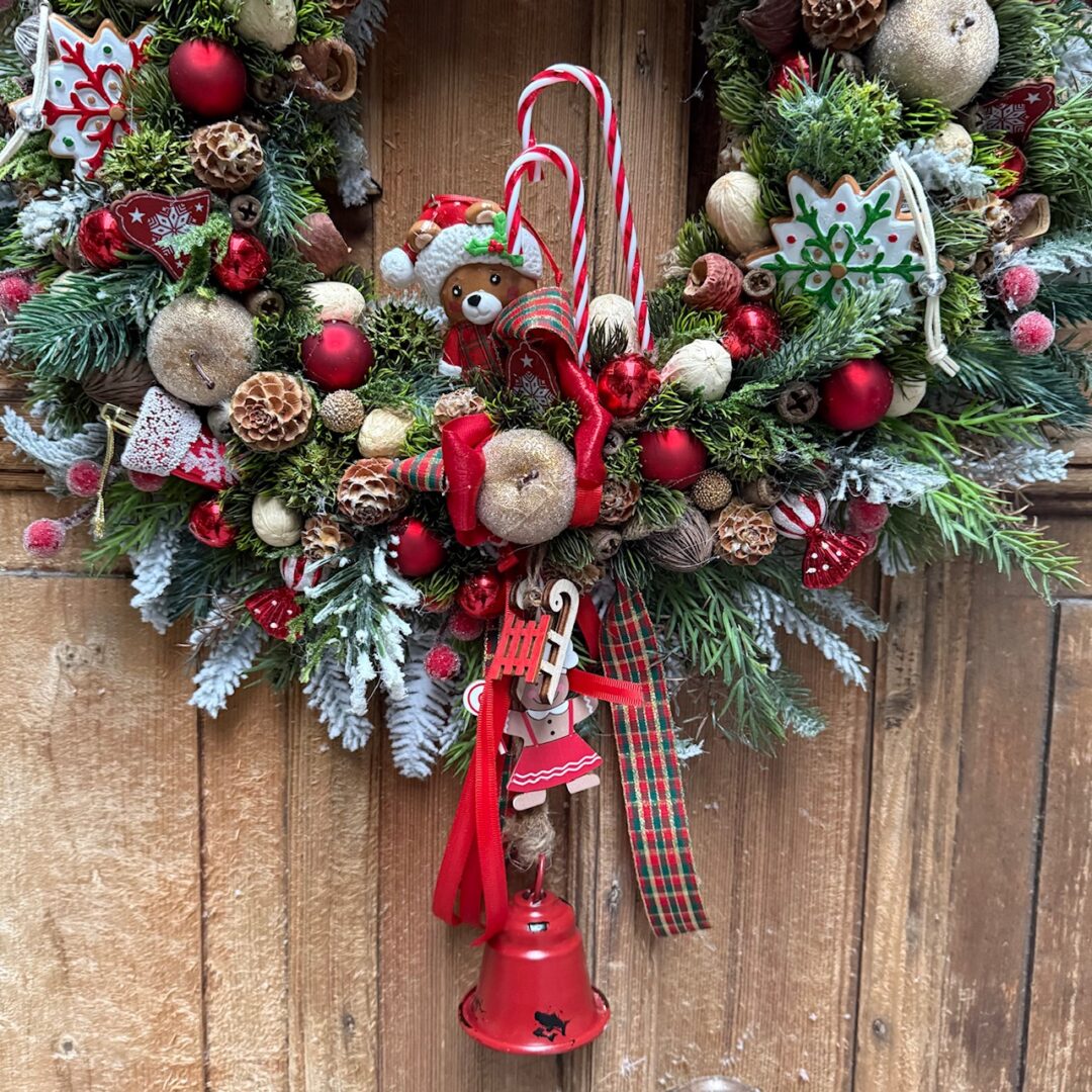 Wianek wykonany ze sztucznych świerkowych gałązek.