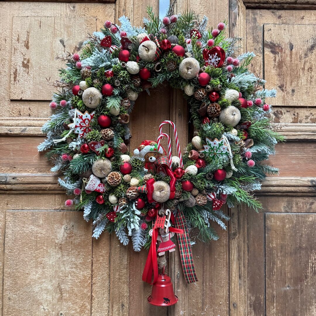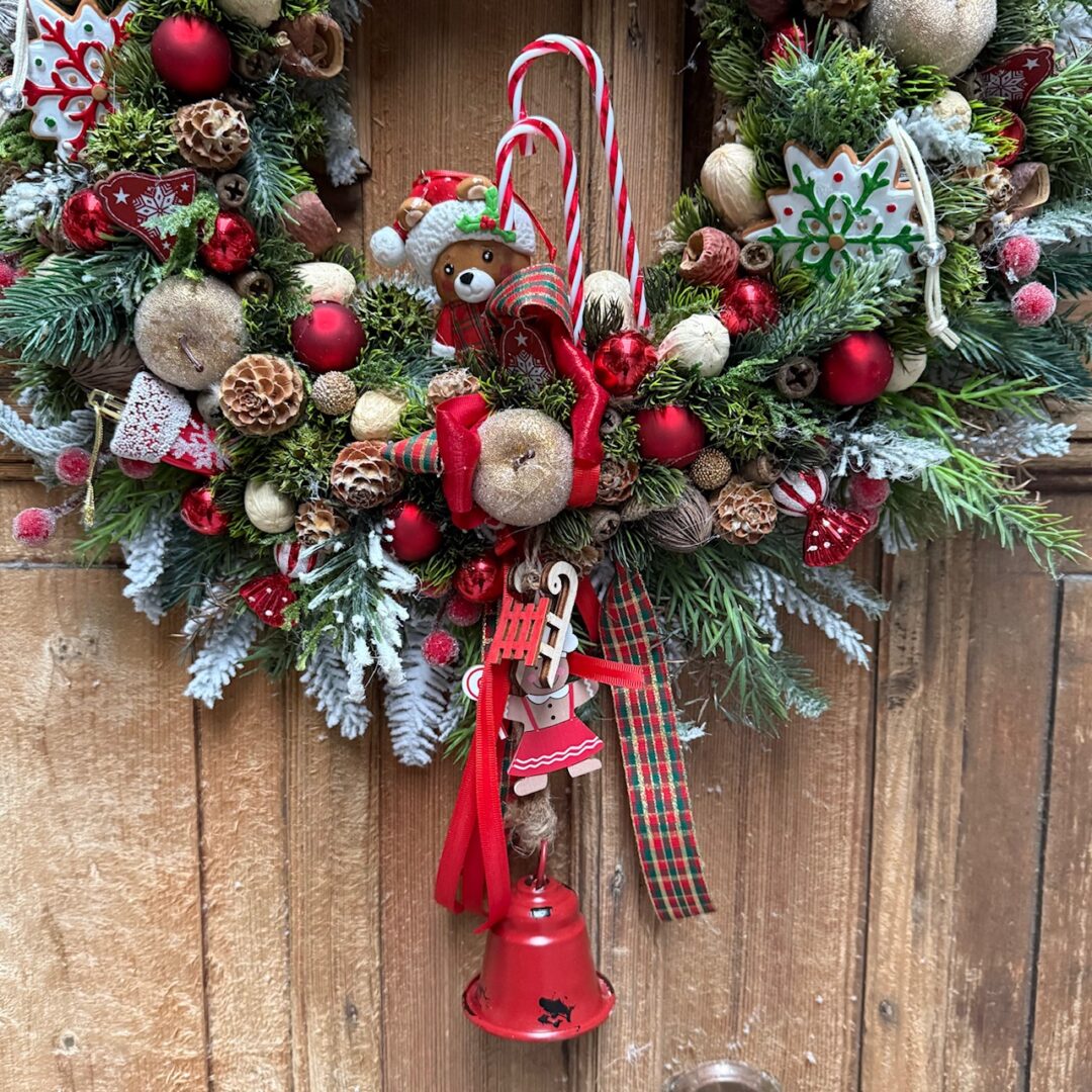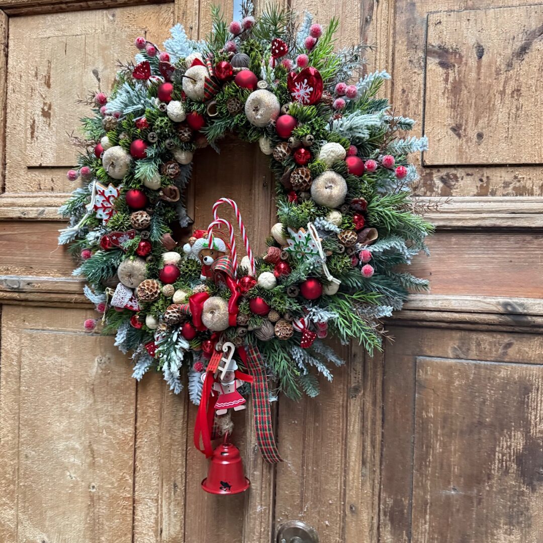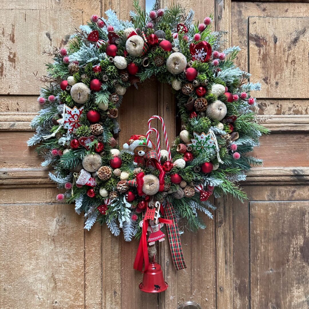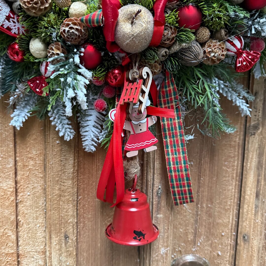 Wianek wykonany ze sztucznych świerkowych gałązek.