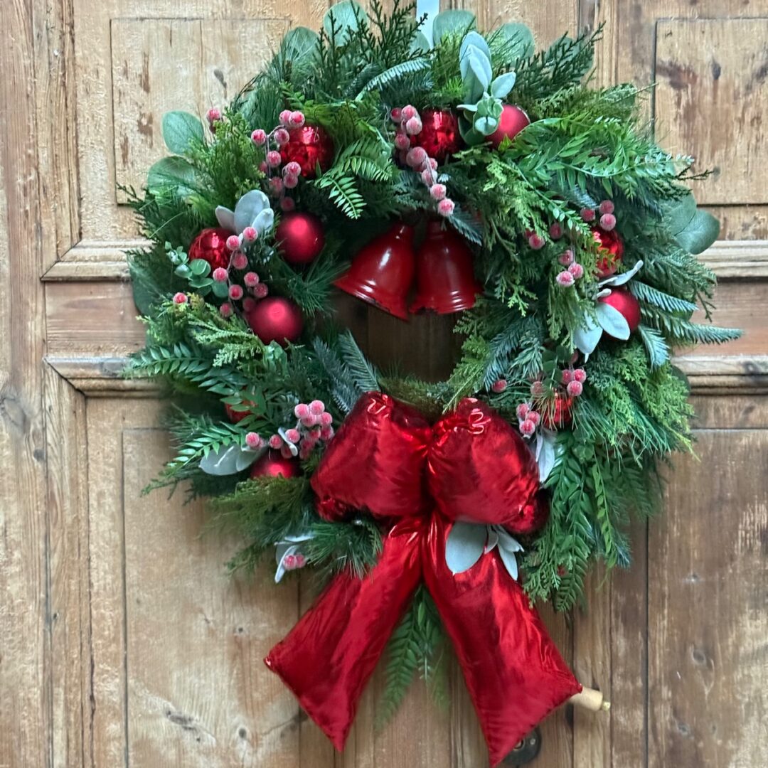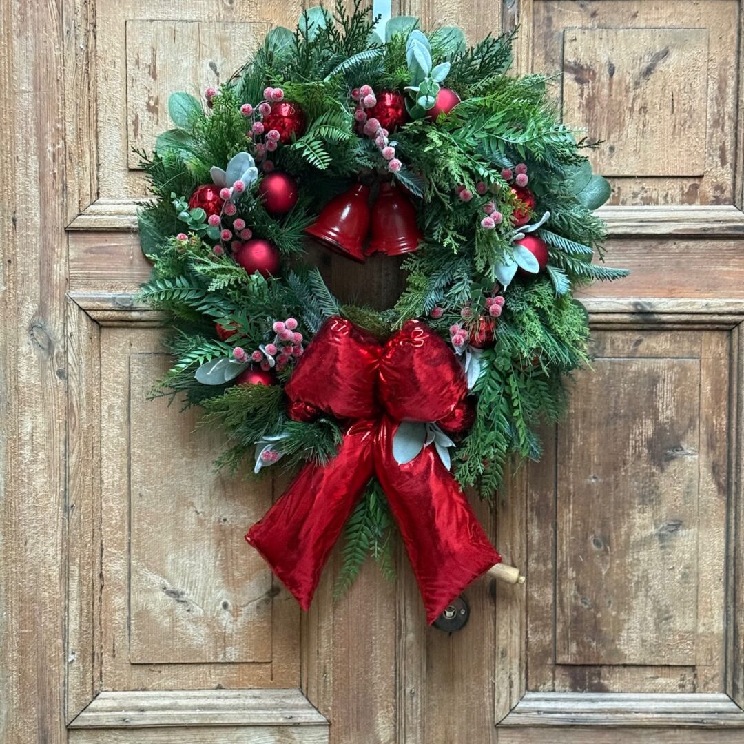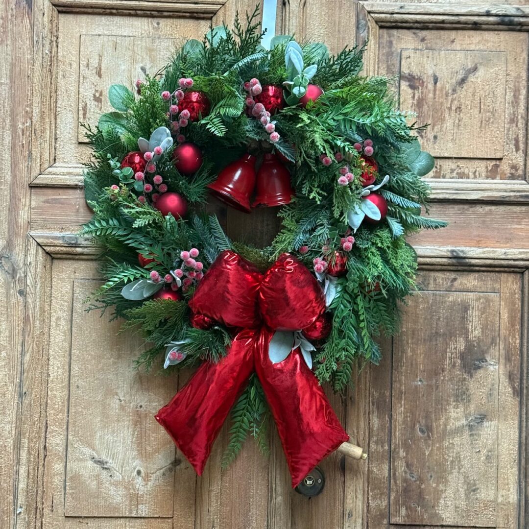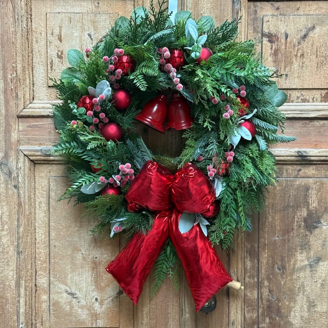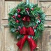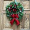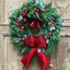 Wianek świąteczny 60 cm czerwony kokarda nr B520