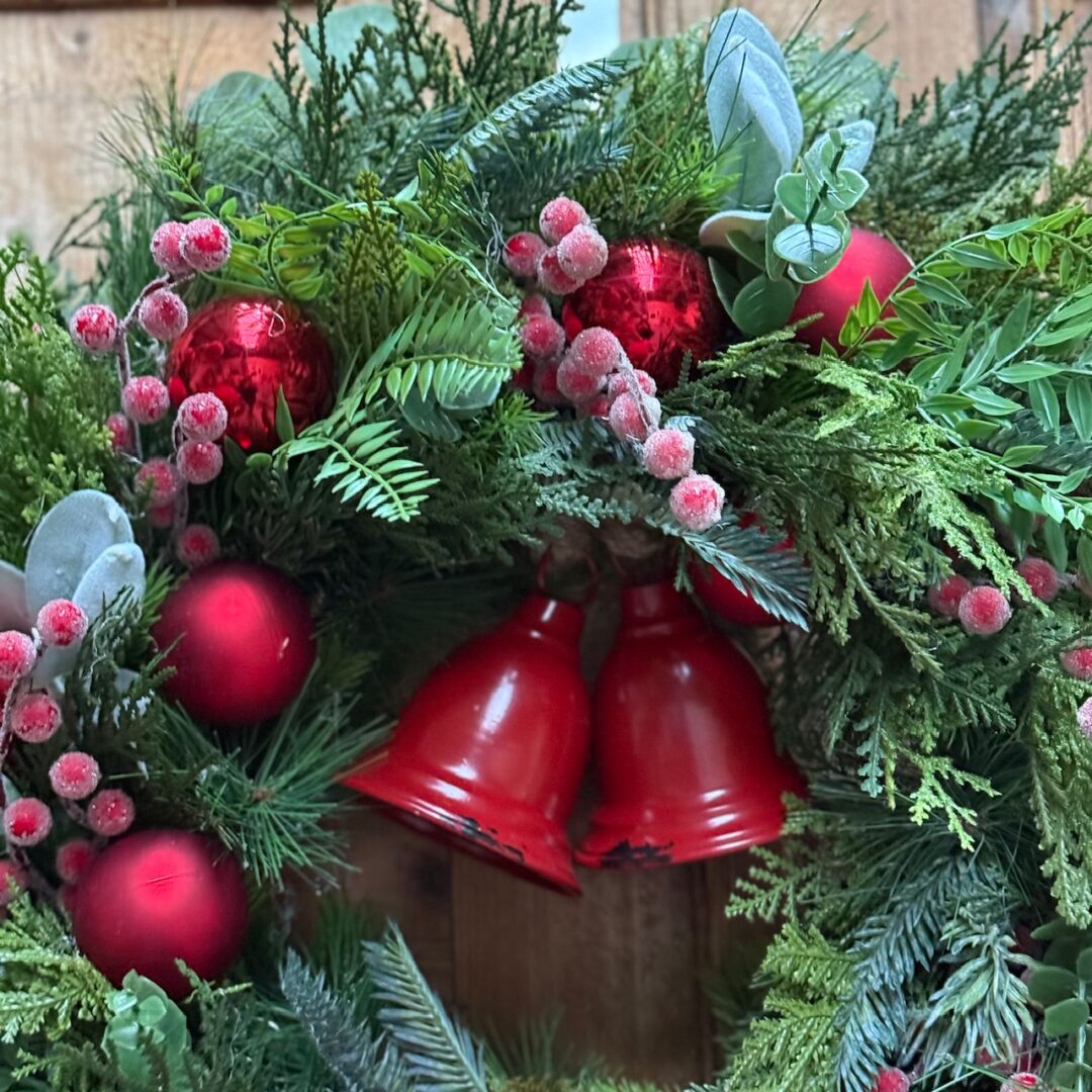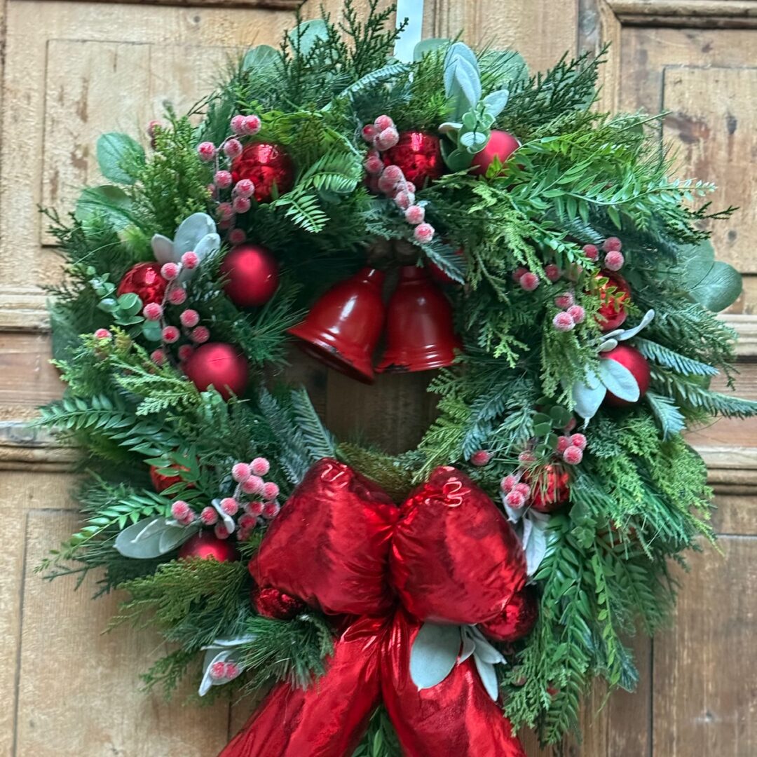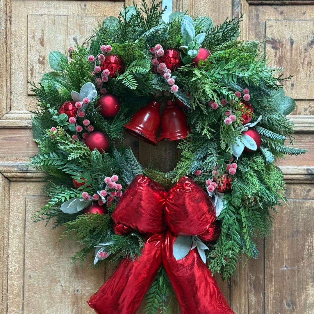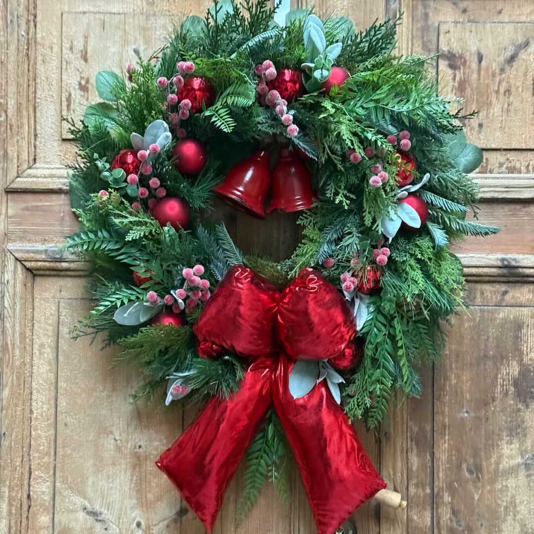 Wianek świąteczny 60 cm czerwony kokarda nr B520