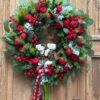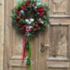 Wianek wykonany ze sztucznych świerkowych gałązek.