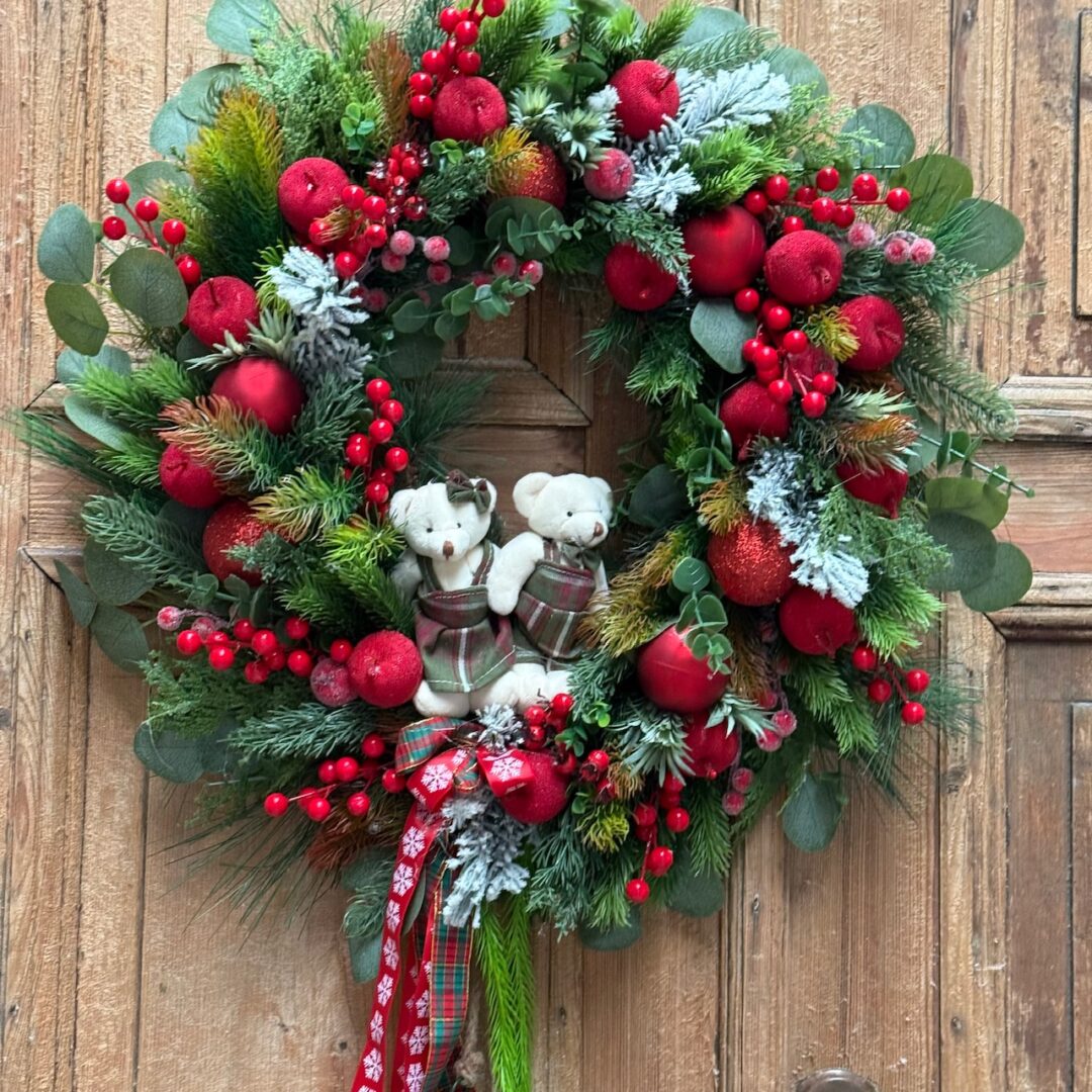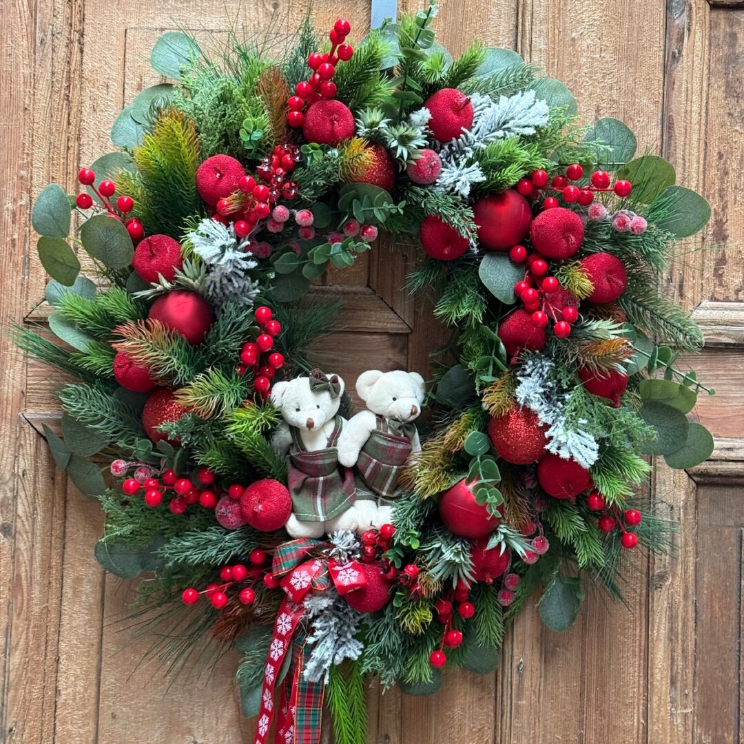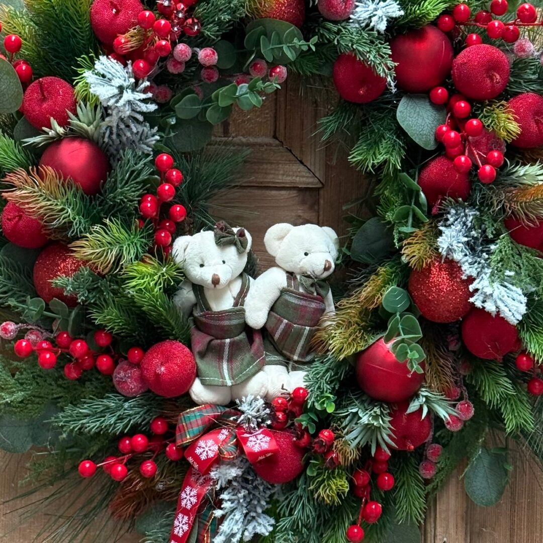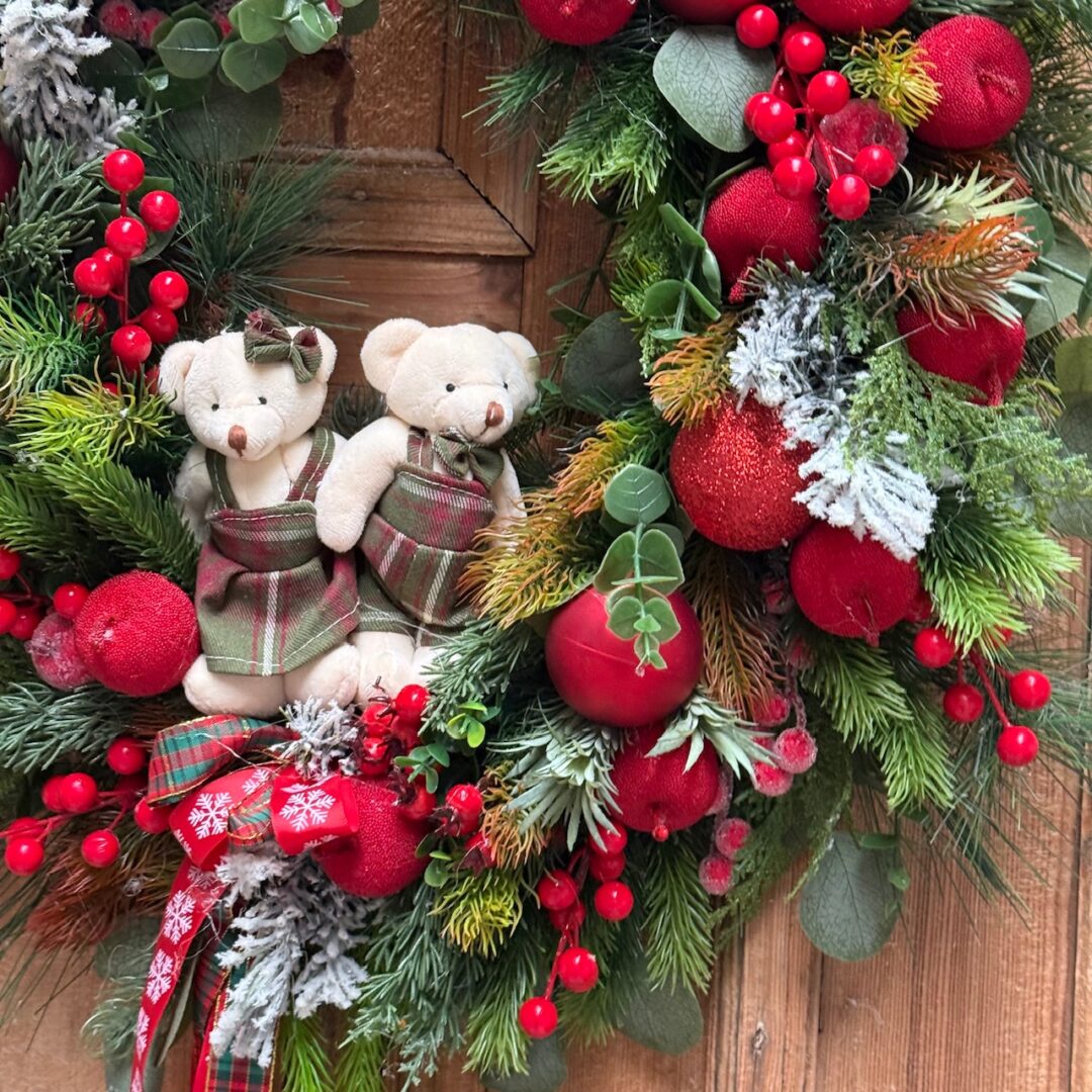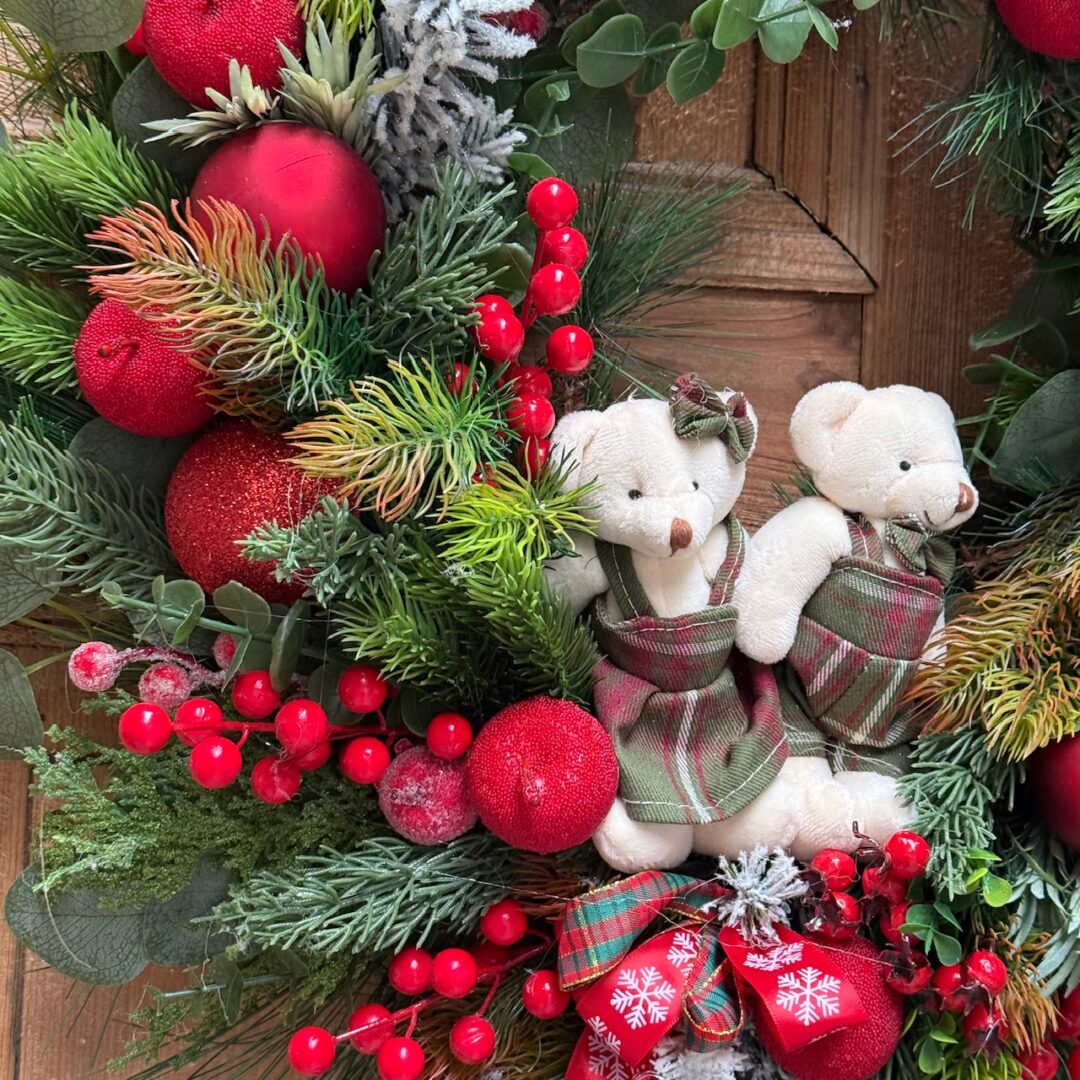 Wianek świąteczny 60 cm czerwony misie nr B487