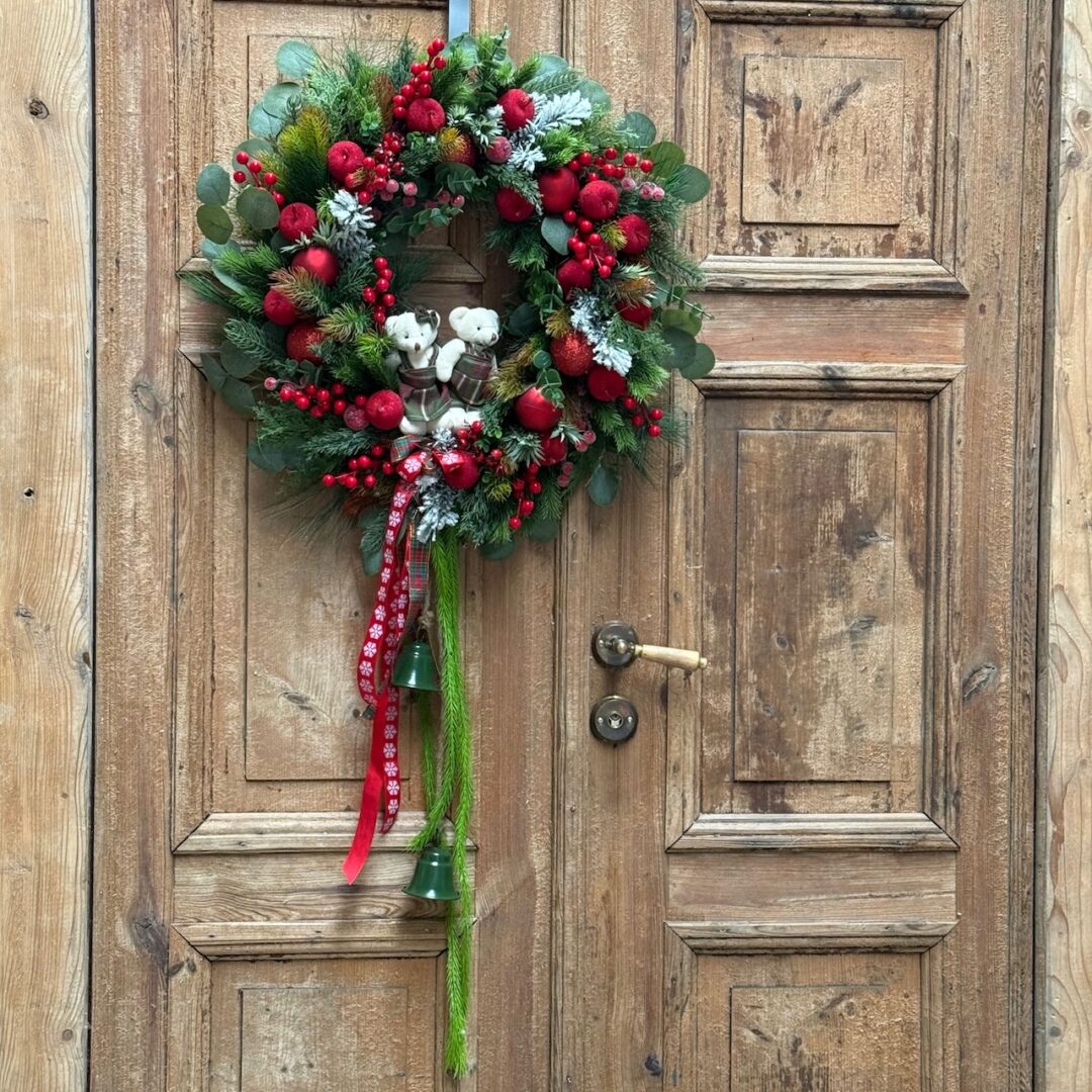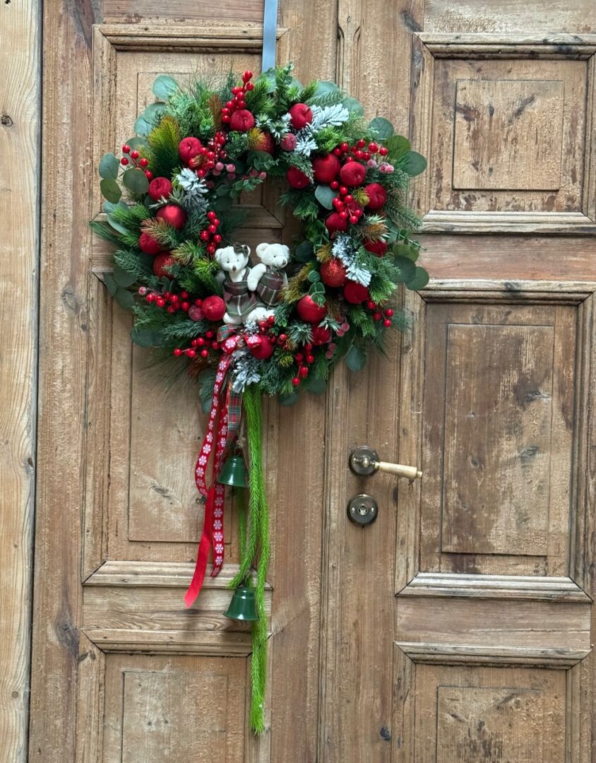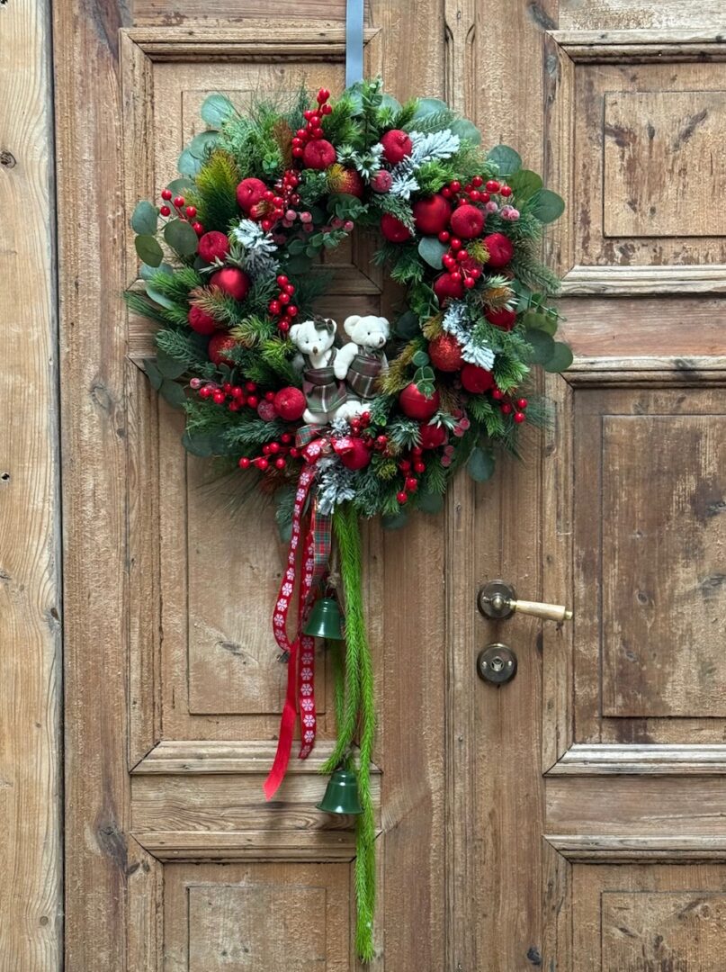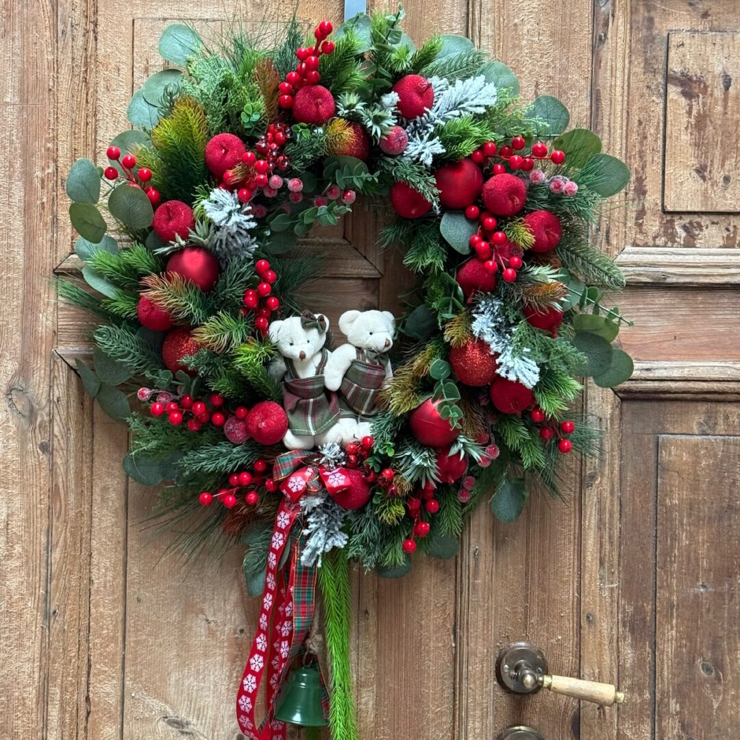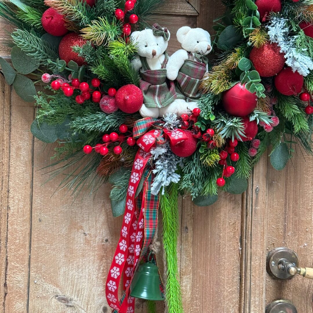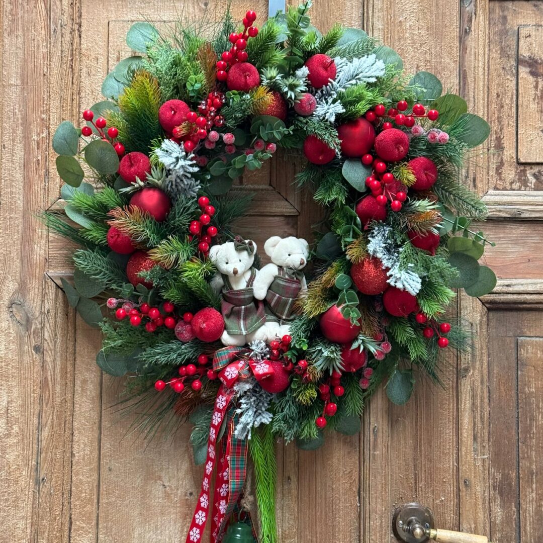 Wianek świąteczny 60 cm czerwony misie nr B487