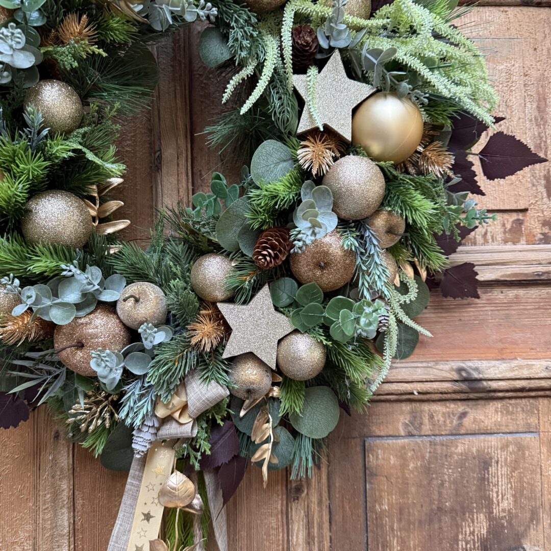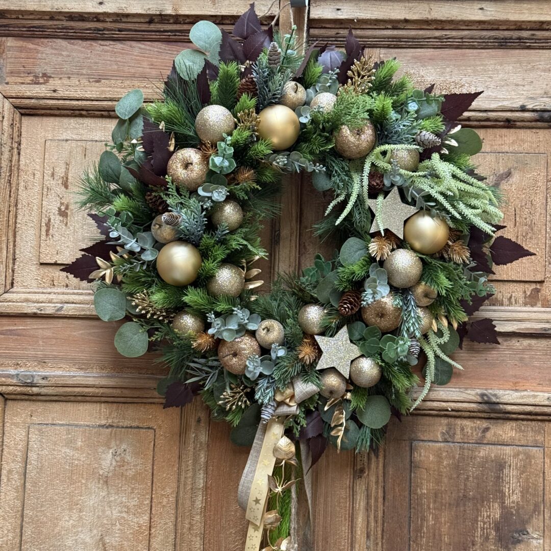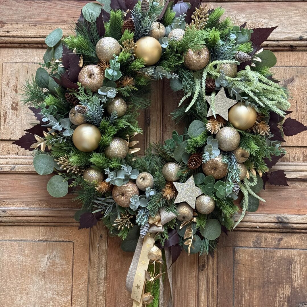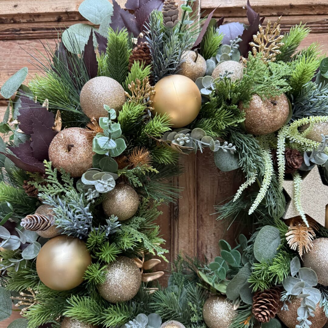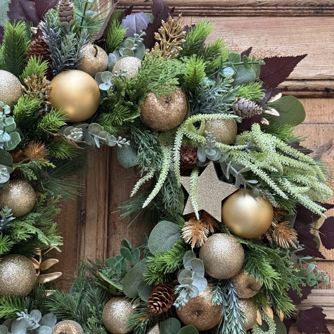 Wianek wykonany ze sztucznych świerkowych gałązek.