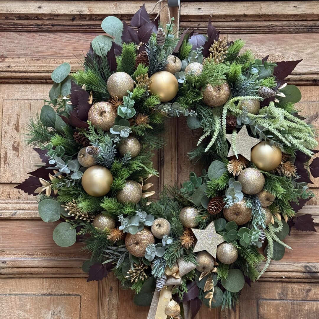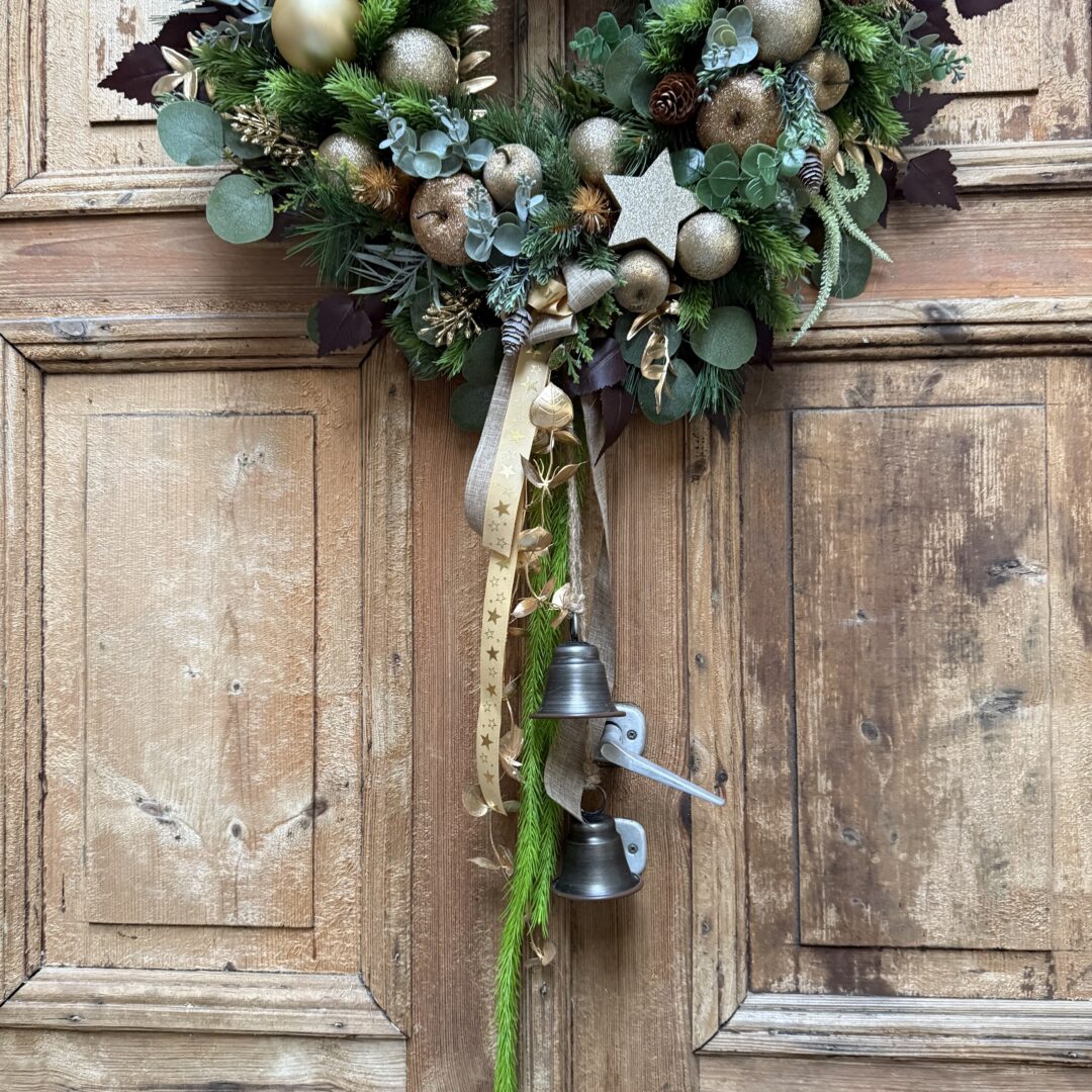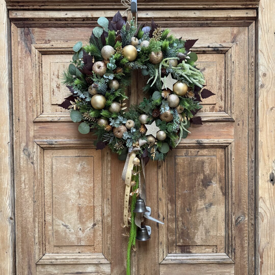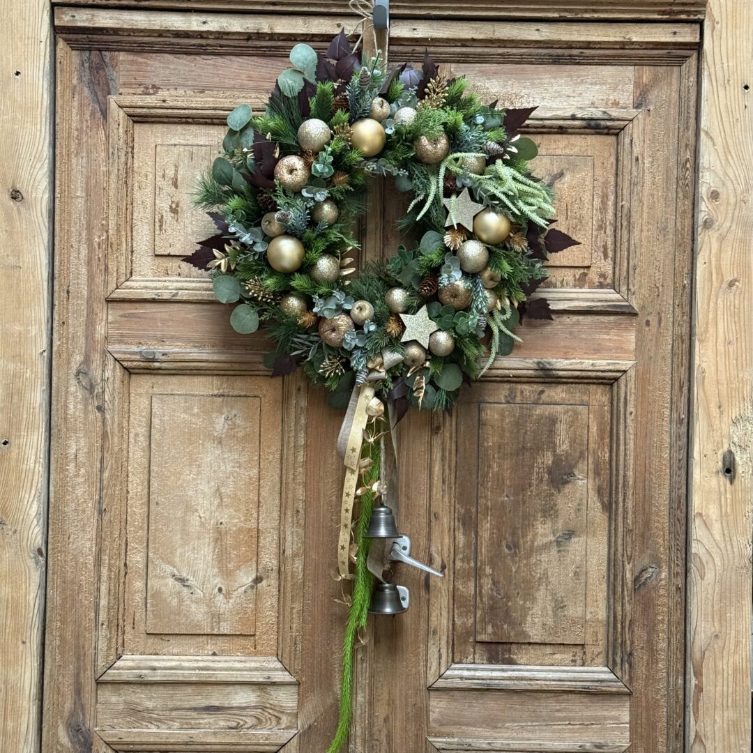 Wianek wykonany ze sztucznych świerkowych gałązek.