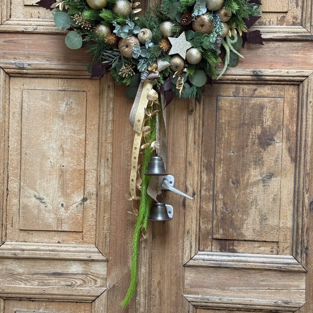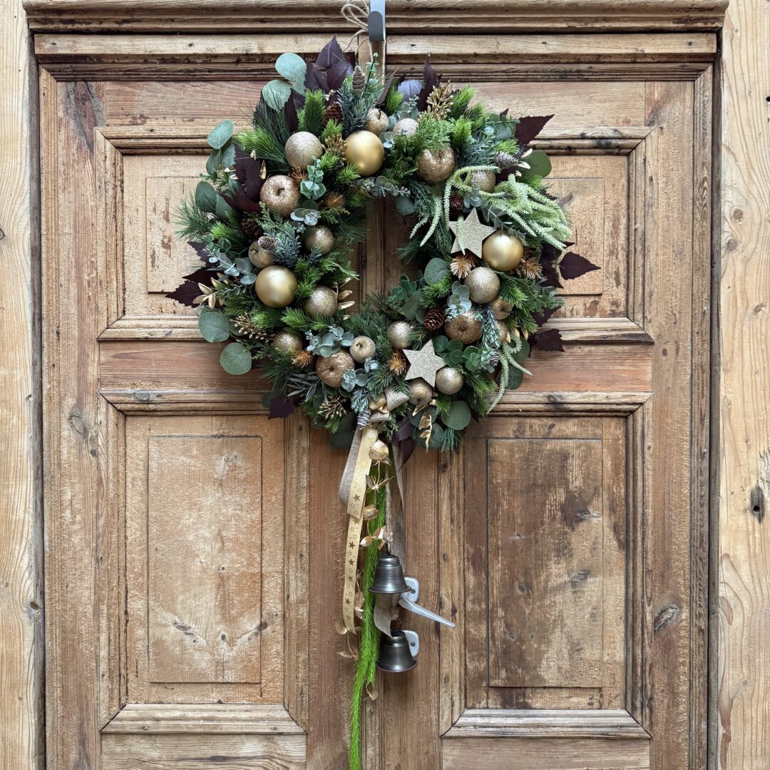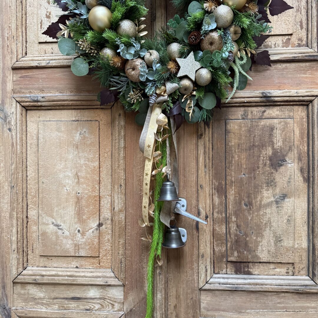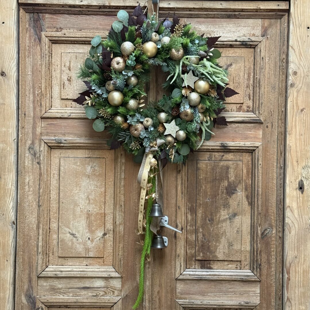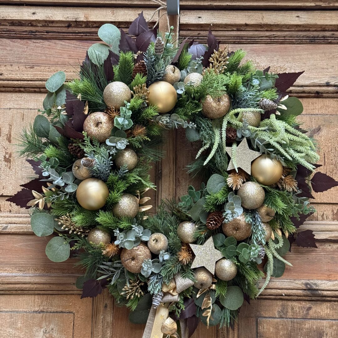 Wianek wykonany ze sztucznych świerkowych gałązek.