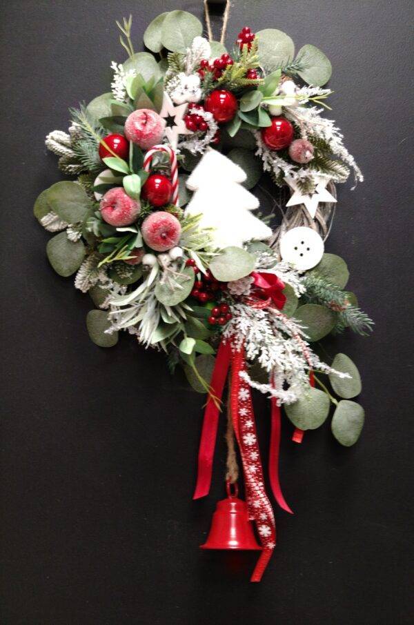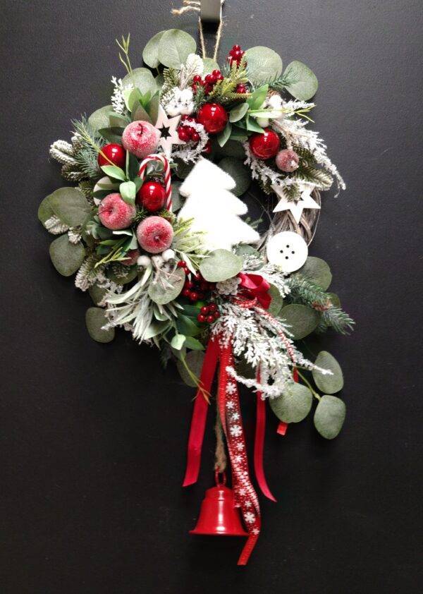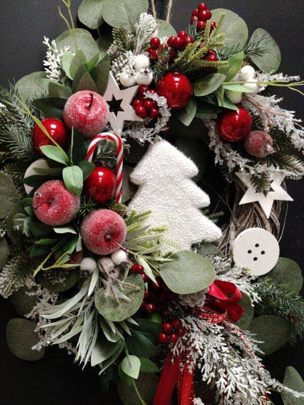 Wianek wykonany ze sztucznych świerkowych gałązek.