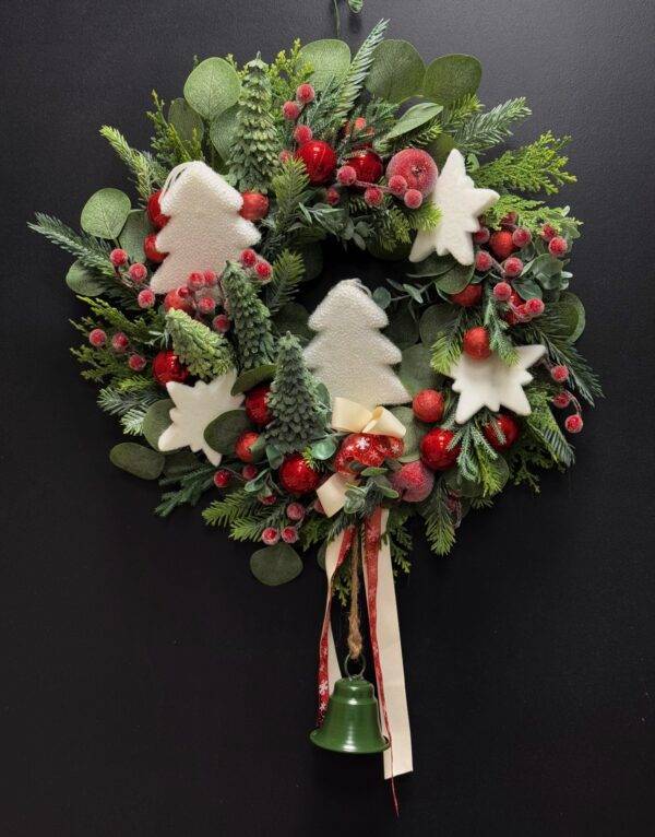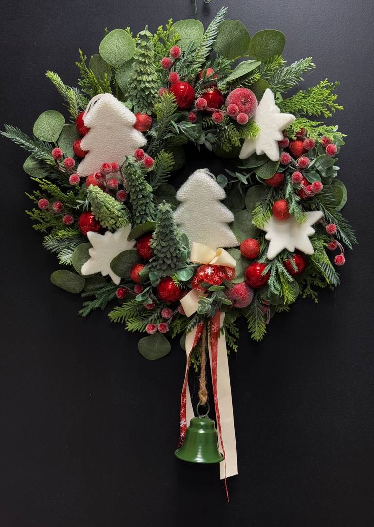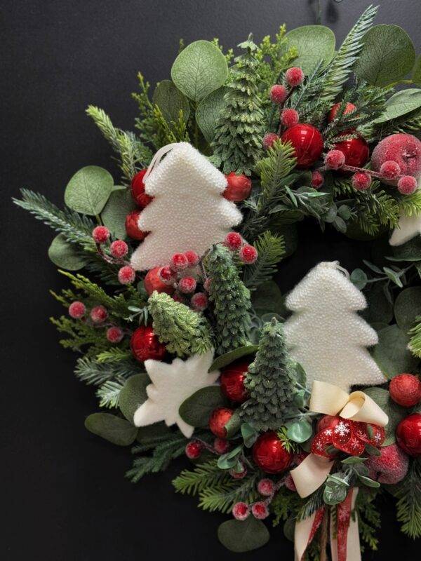 Wianek świąteczny 45 cm białe choinki nr B321