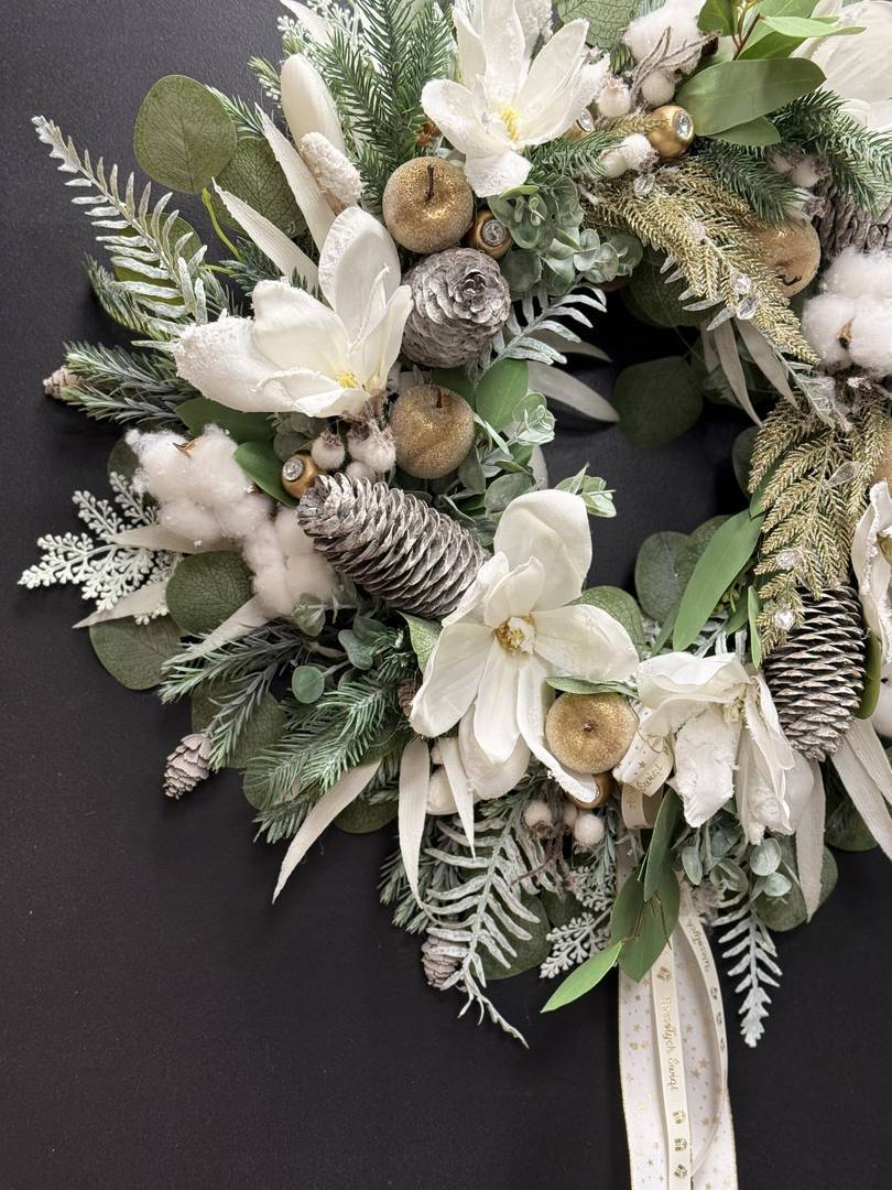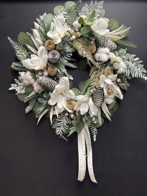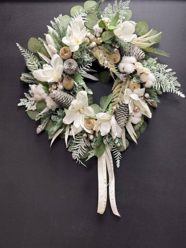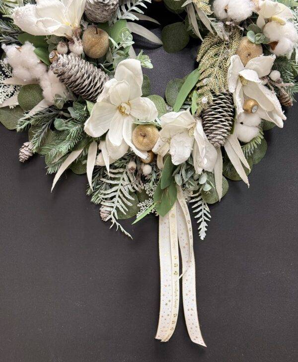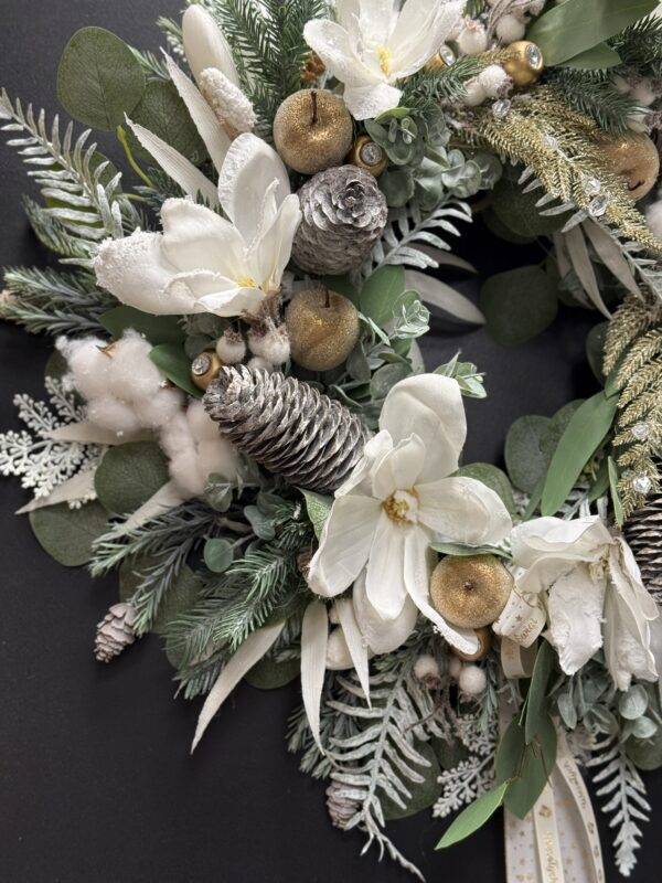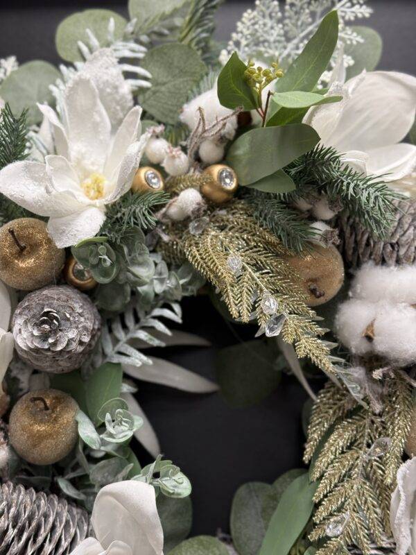 Wianek świąteczny 53 cm zielony biały magnolia nr B280