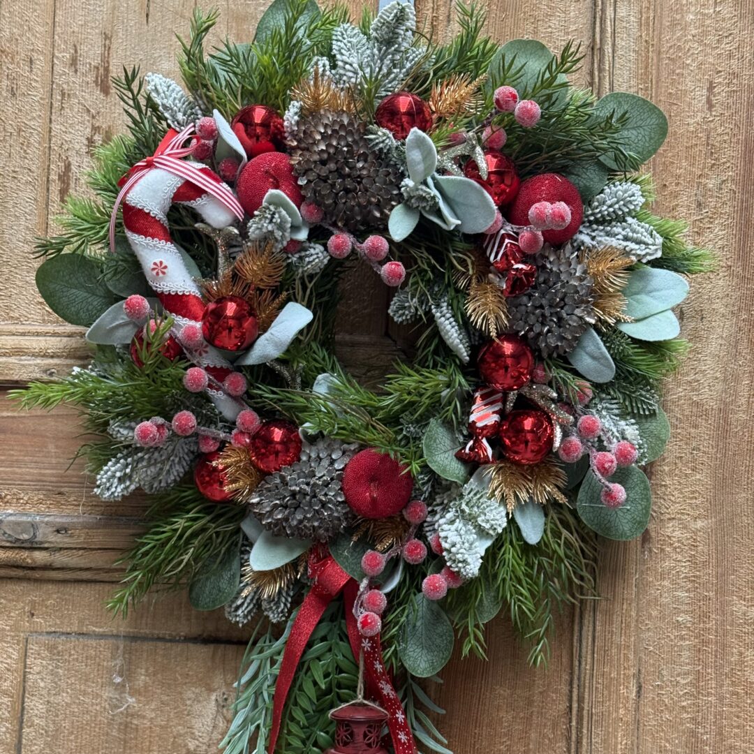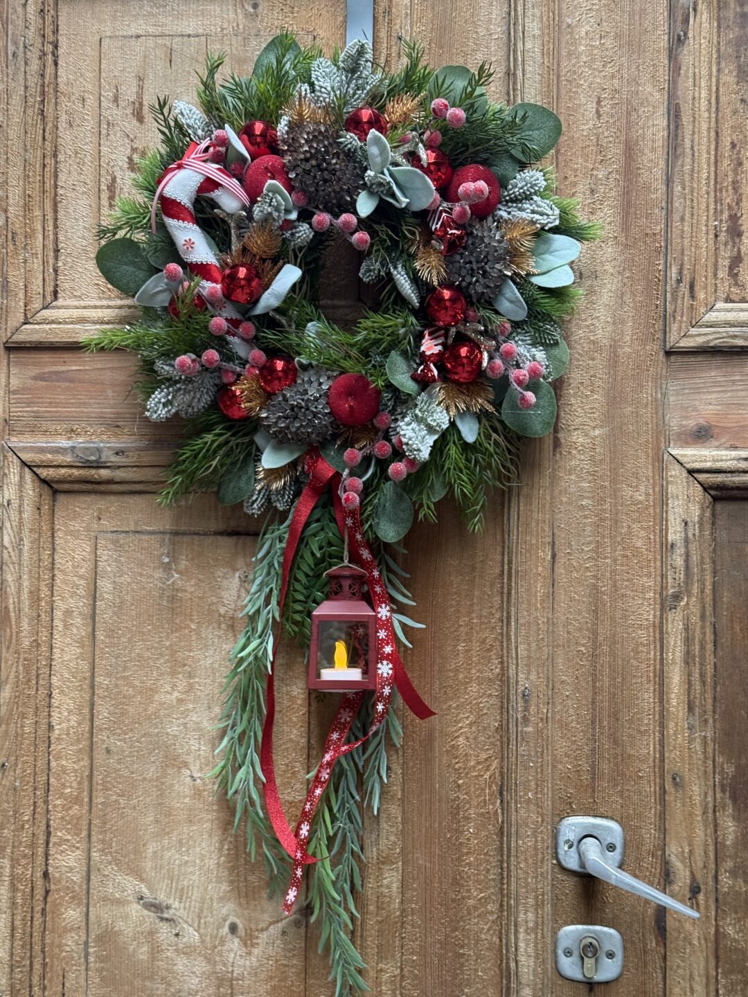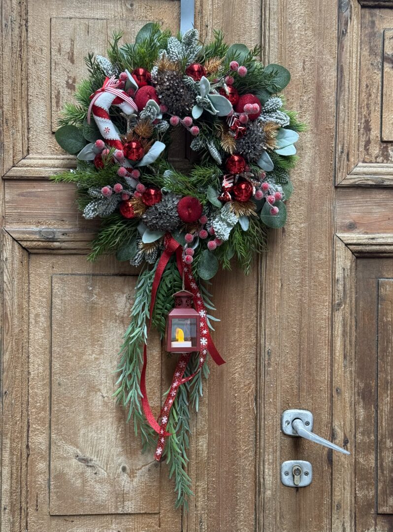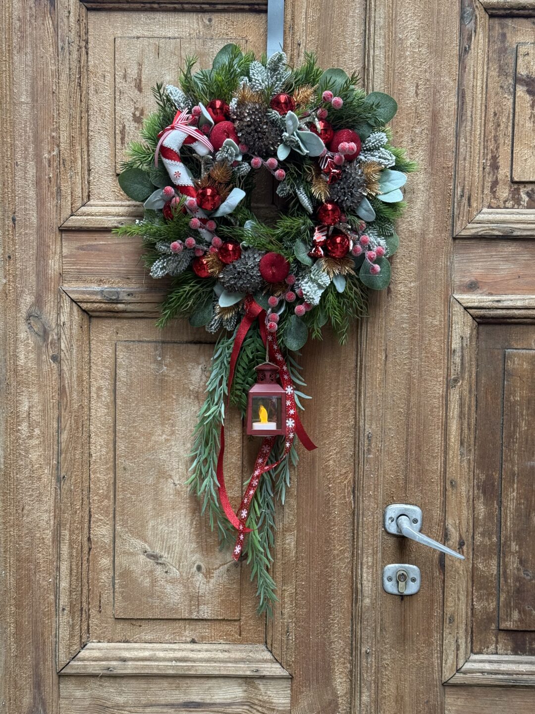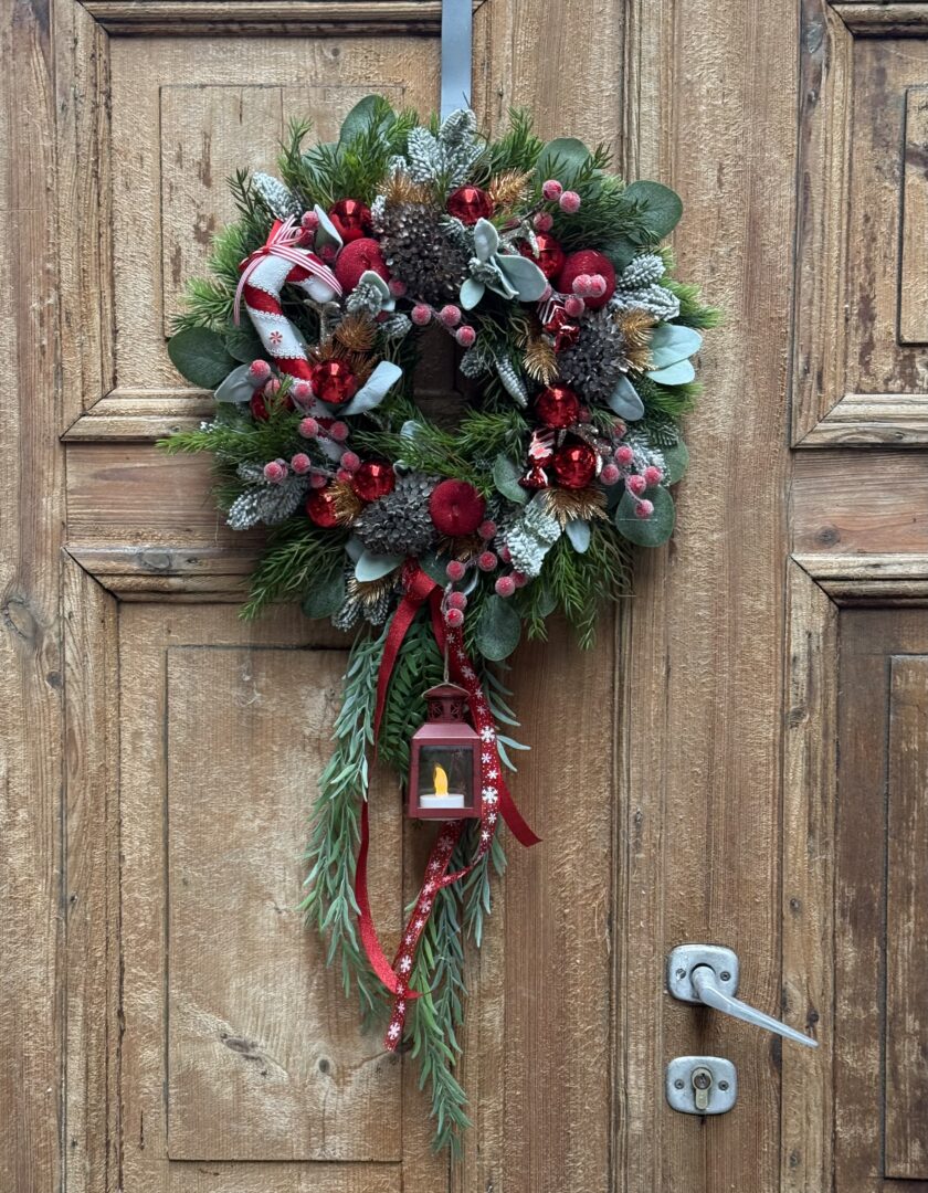 Wianek wykonany ze sztucznych świerkowych gałązek.